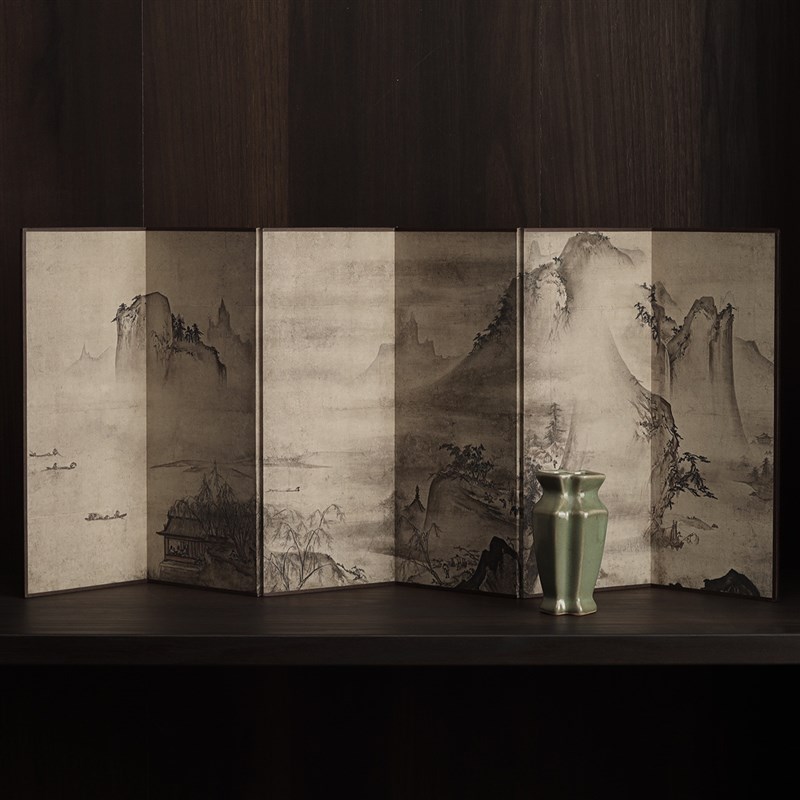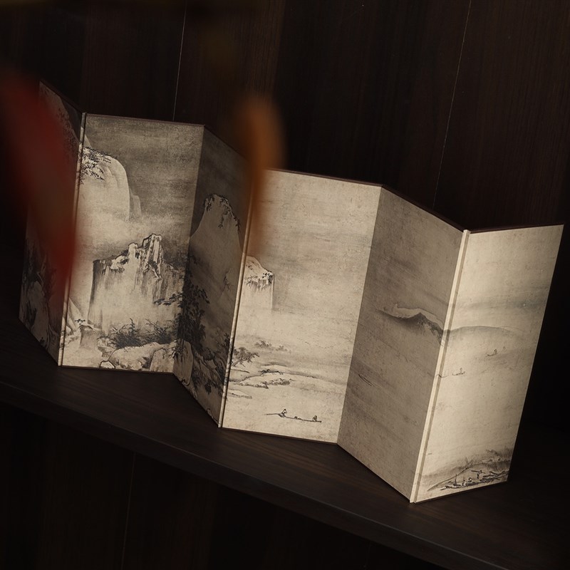 日式美学四季山水图双面桌面A小屏风茶桌屏风茶室背景摆件