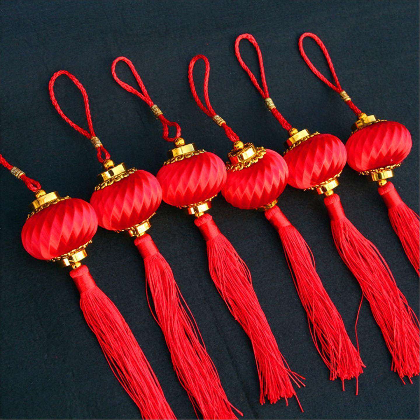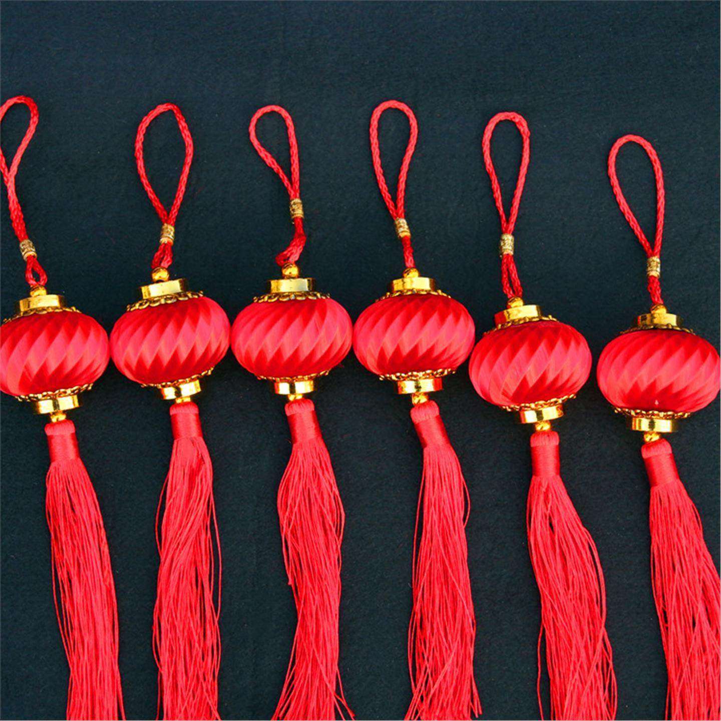 热销螺纹红色丝光线单个小灯笼串结婚新房植物盆景装饰小挂件喜庆