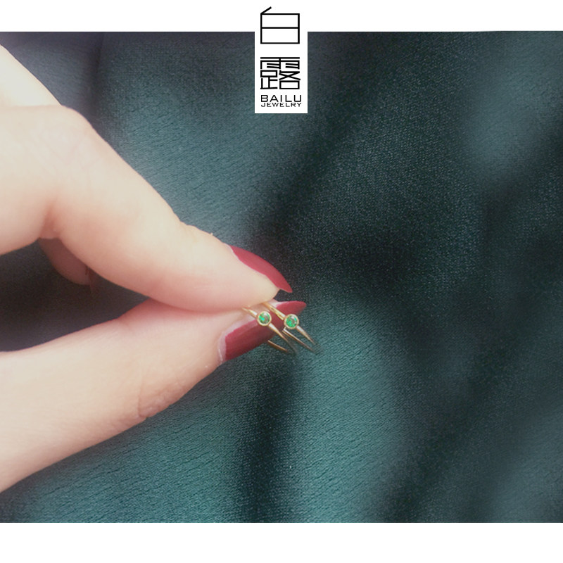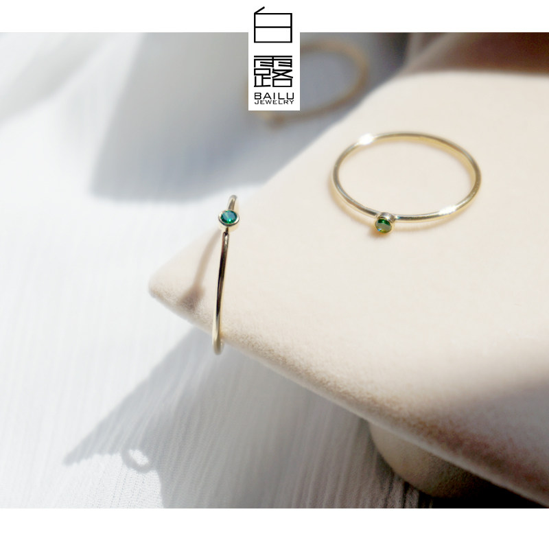 白露 超细14k包金锆石戒指叠戴百搭指环洗澡可戴不掉色祖母绿色