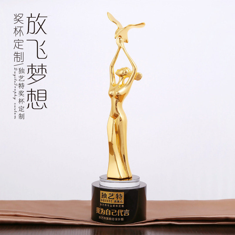 高档奥斯卡小金人奖杯定制飞翔创意女性选美模特美容金属奖杯年会