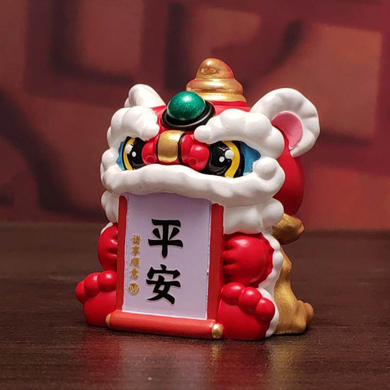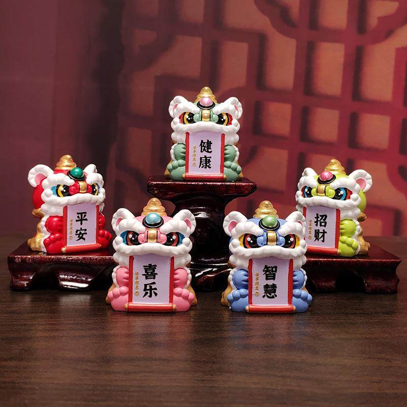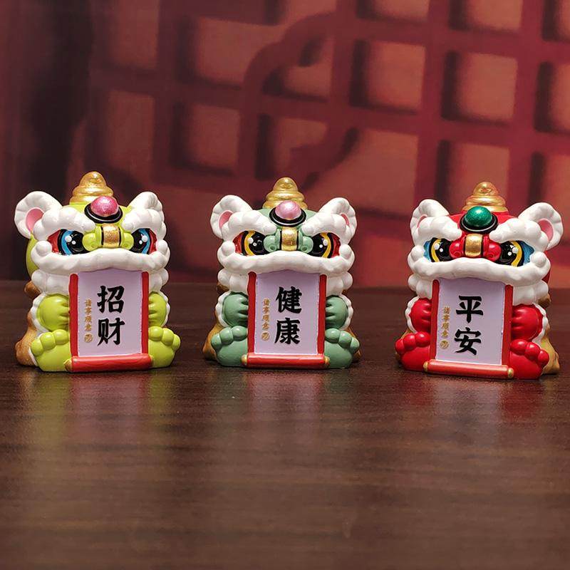 国潮招财醒狮摆件中国风舞狮办公室汽车中控装饰春节喜庆新年礼物
