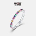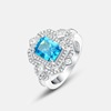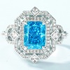 新款浅海蓝高碳钻戒指女S925银镀18K金镶嵌彩宝宝石指戒时尚高端