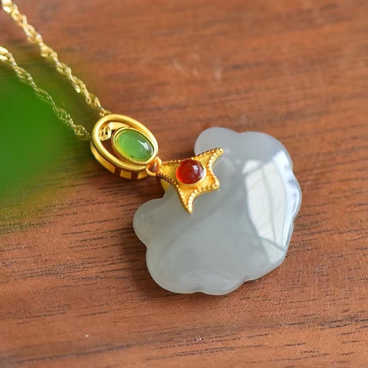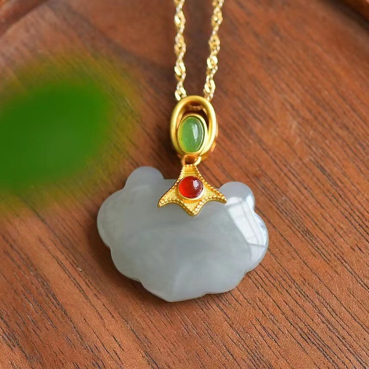 天然S925纯银烟灰色鸿运当头如意锁吊坠原创设计网红款包邮附证书
