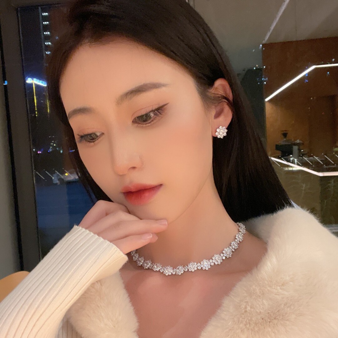 sunflower太阳花满圈钻项链颈链925银镀金轻奢晚宴款婚纱皮草搭子