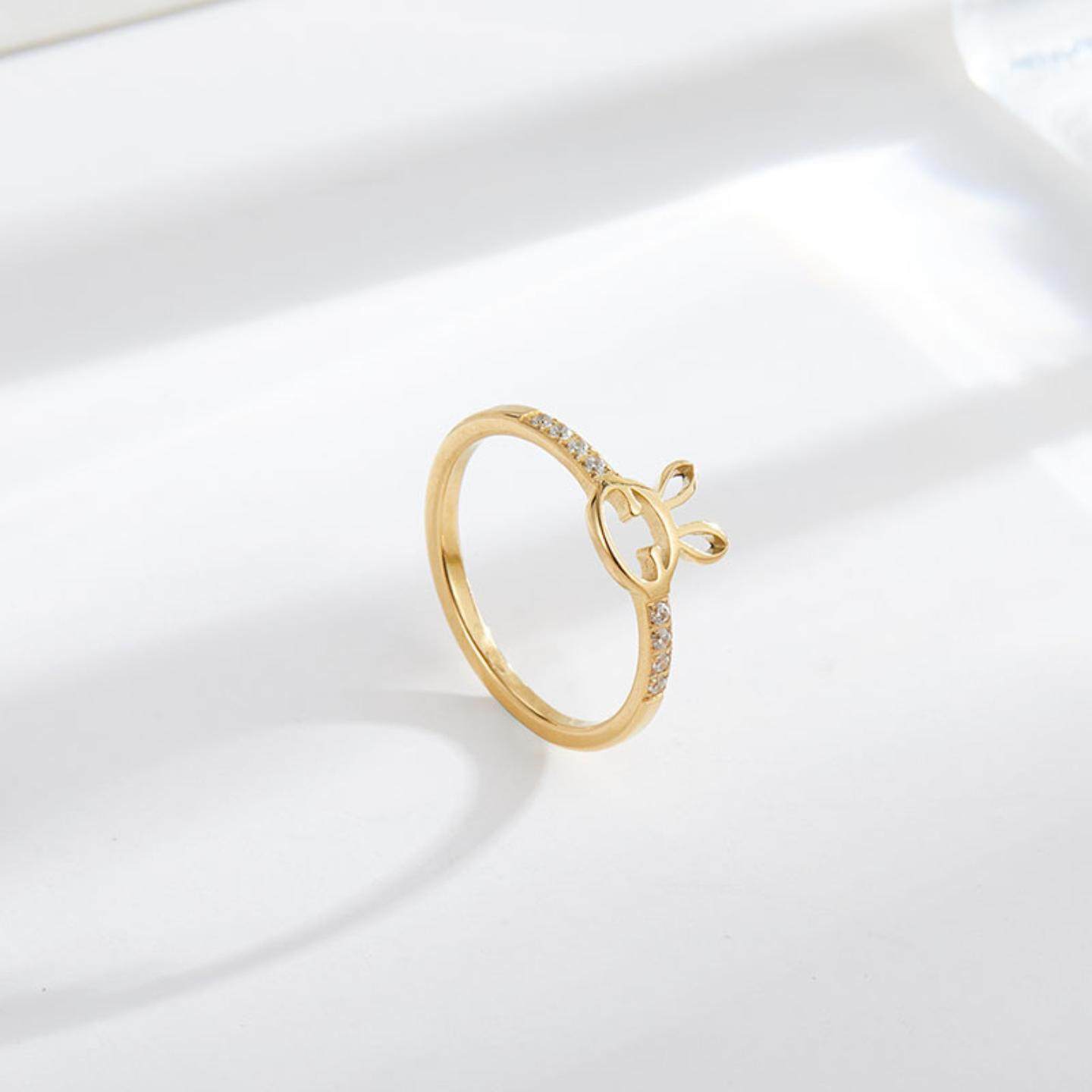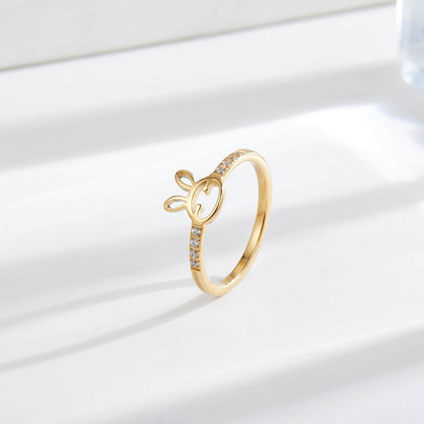镶钻钛钢戒指ring女兔子戒指ring不掉色小众设计可爱闺蜜甜新款