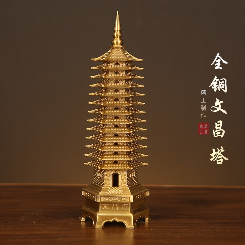 纯黄铜文昌塔摆件九层十三层的2023金榜提名客厅办公桌书桌工艺品