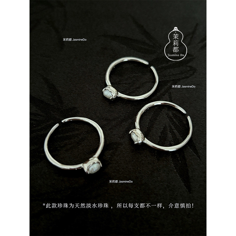 茉莉都【小米粒】天然小米珍珠开口戒指通体s925银精美小巧指环