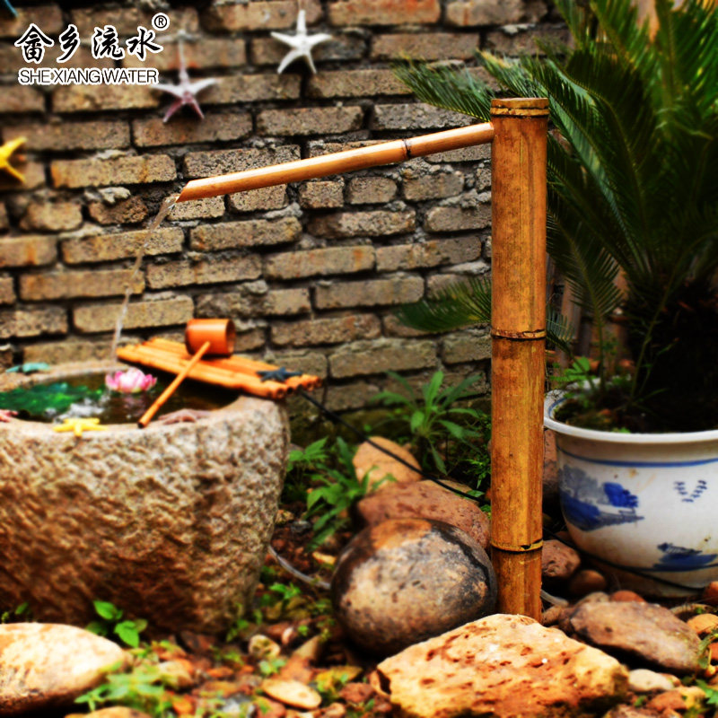 竹流水摆件庭院竹子装饰造家居鱼缸石槽循环流水喷泉竹子流水器