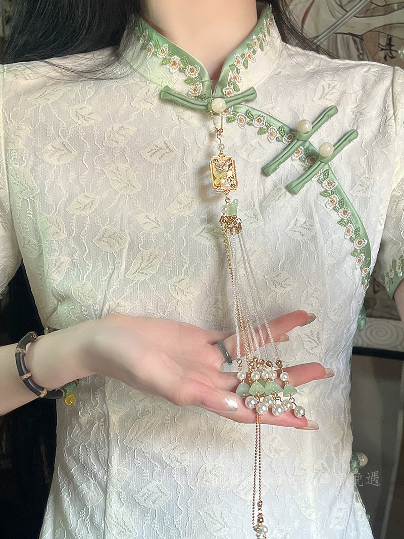 云栖青玉间~新中式古风汉服旗袍压襟挂件女国风流苏挂饰禁步配饰