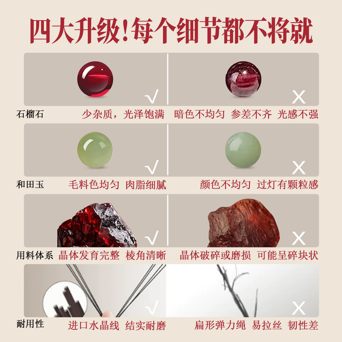 普陀山文创集天然三圈石榴石手串和田玉手链女百搭手饰情侣送礼物