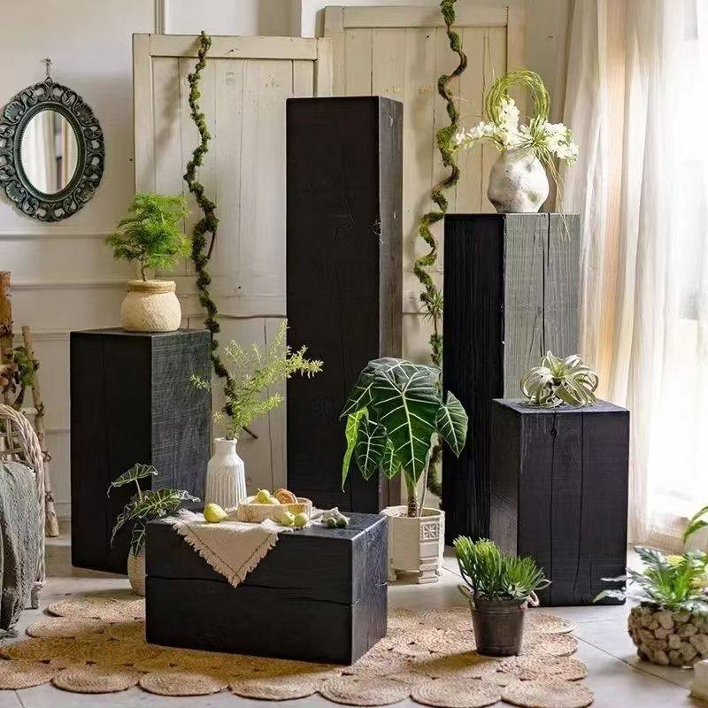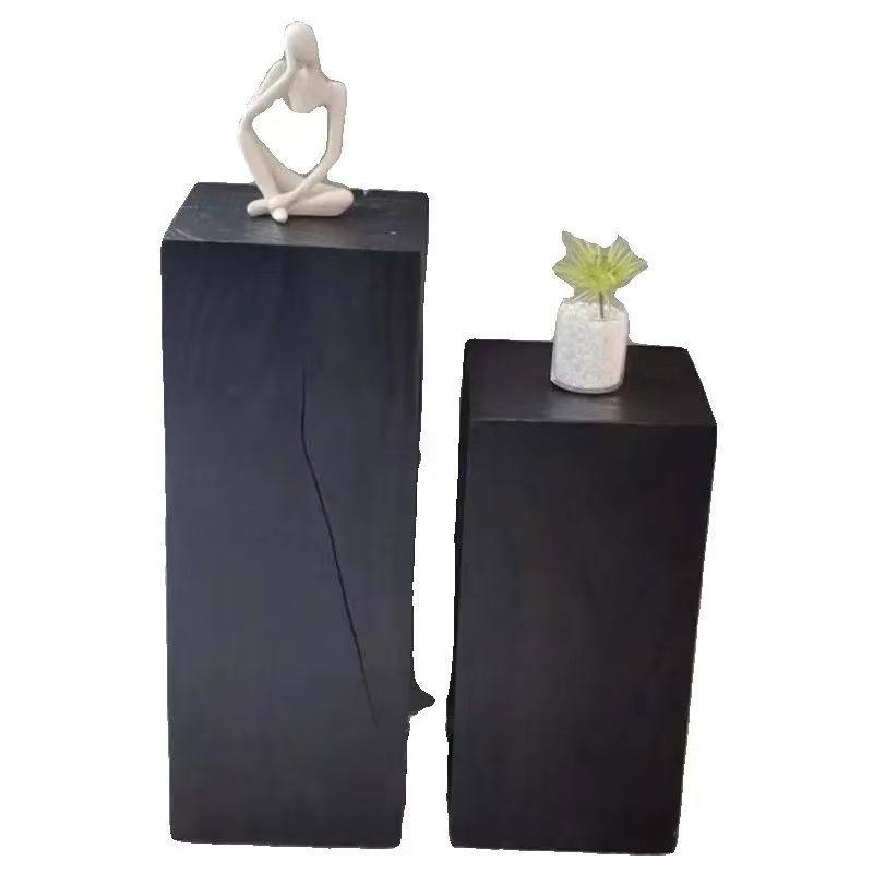 玄关摆件实木墩子黑色香樟树树桩凳子茶几摆件置物架方形木墩子