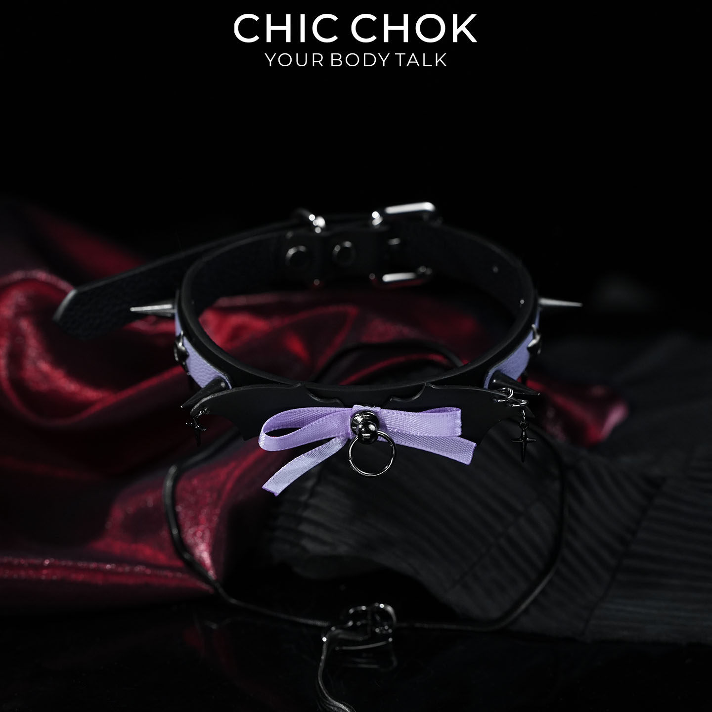 CHICCHOK库洛米小恶魔项圈紫色蝴蝶结爱心尖钉甜酷项链原创设计