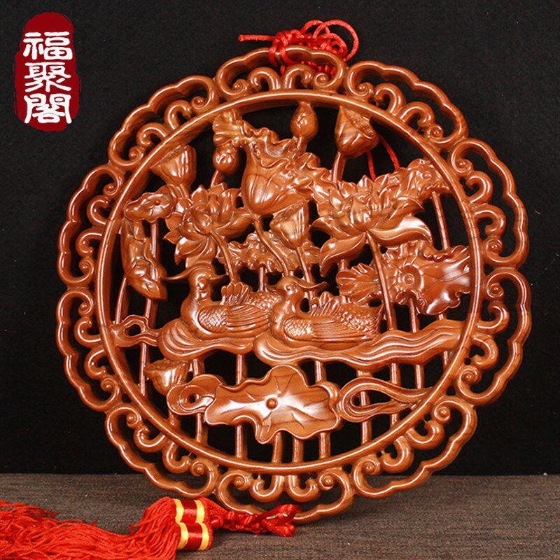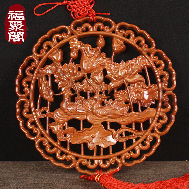 桃木鸳鸯图案摆件卧室挂件一对实木质装饰品婚房结婚床头客厅摆设