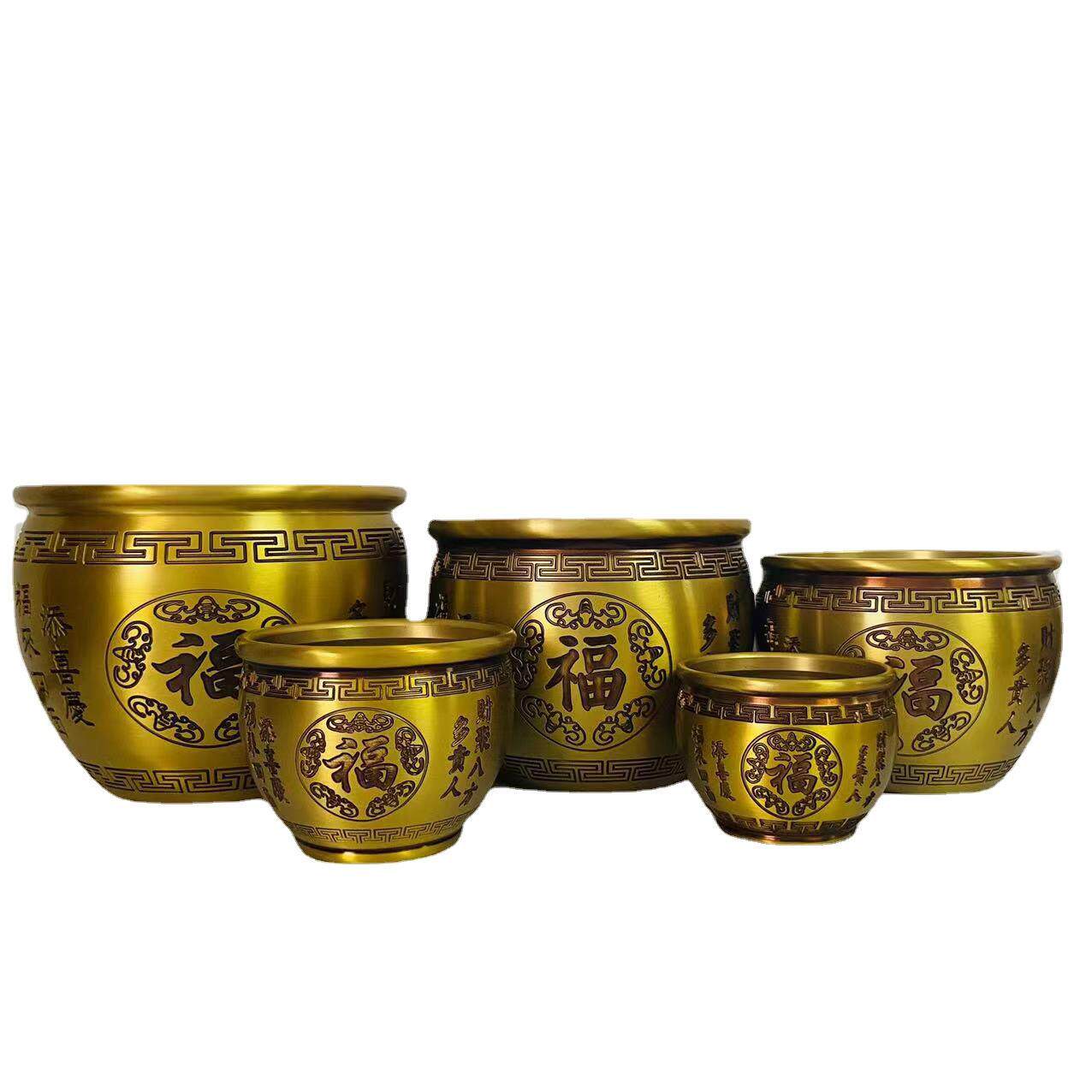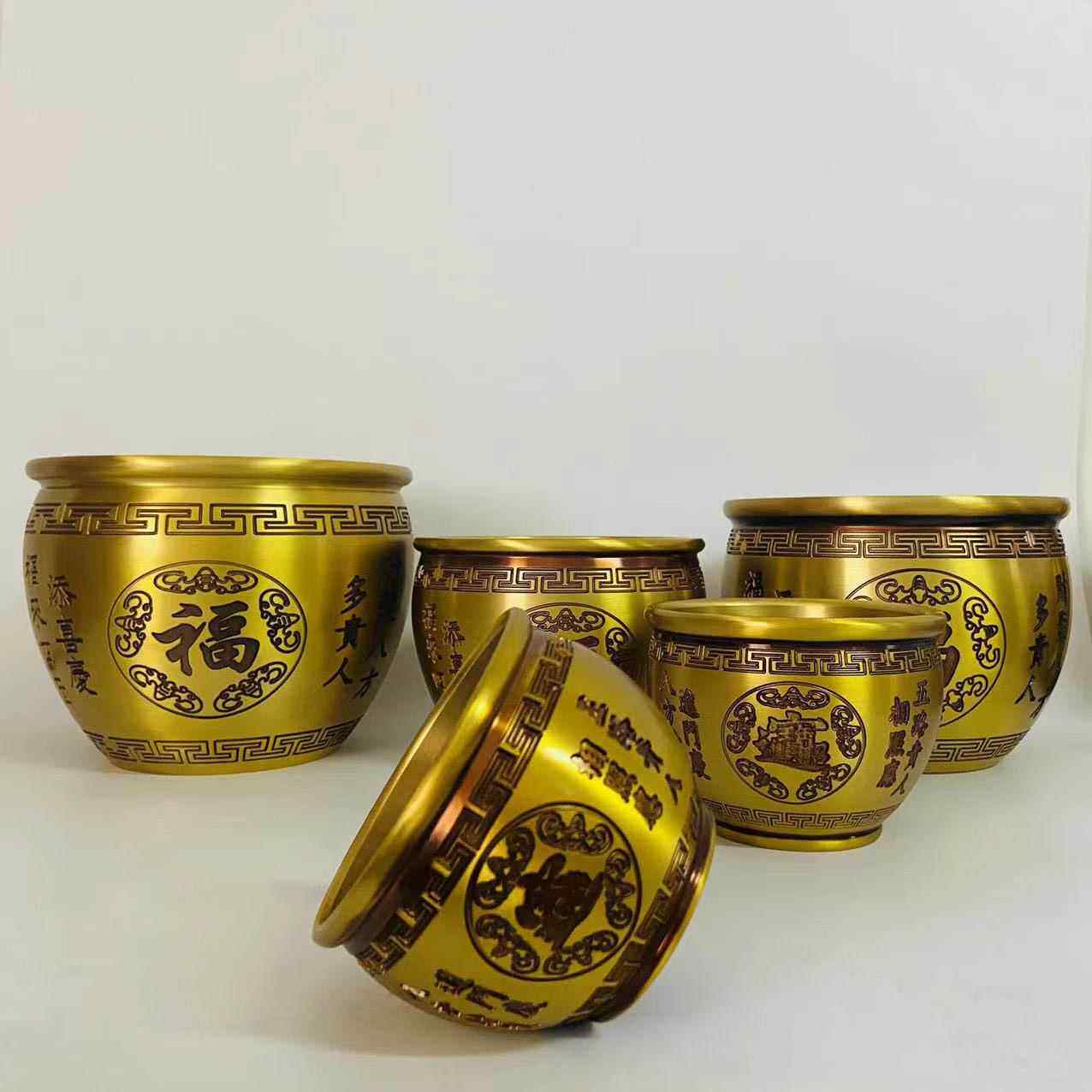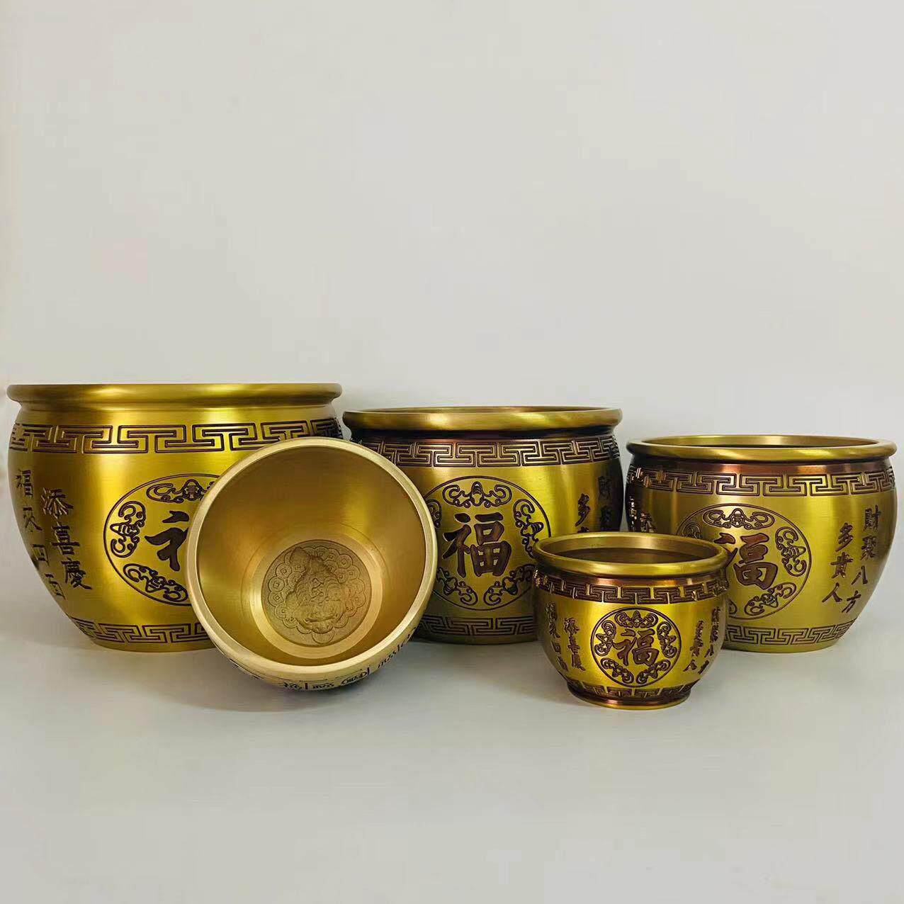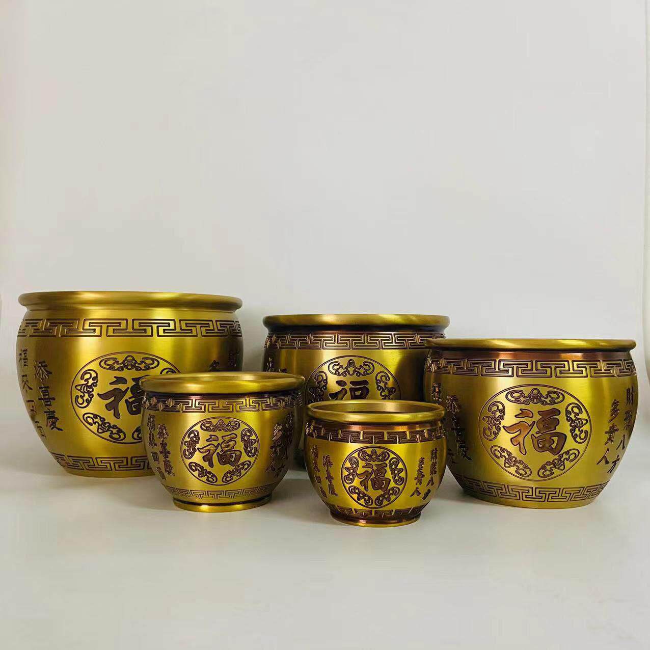 量大价优黄铜制作 八宝对联缸 线雕黄色 金蟾压缸