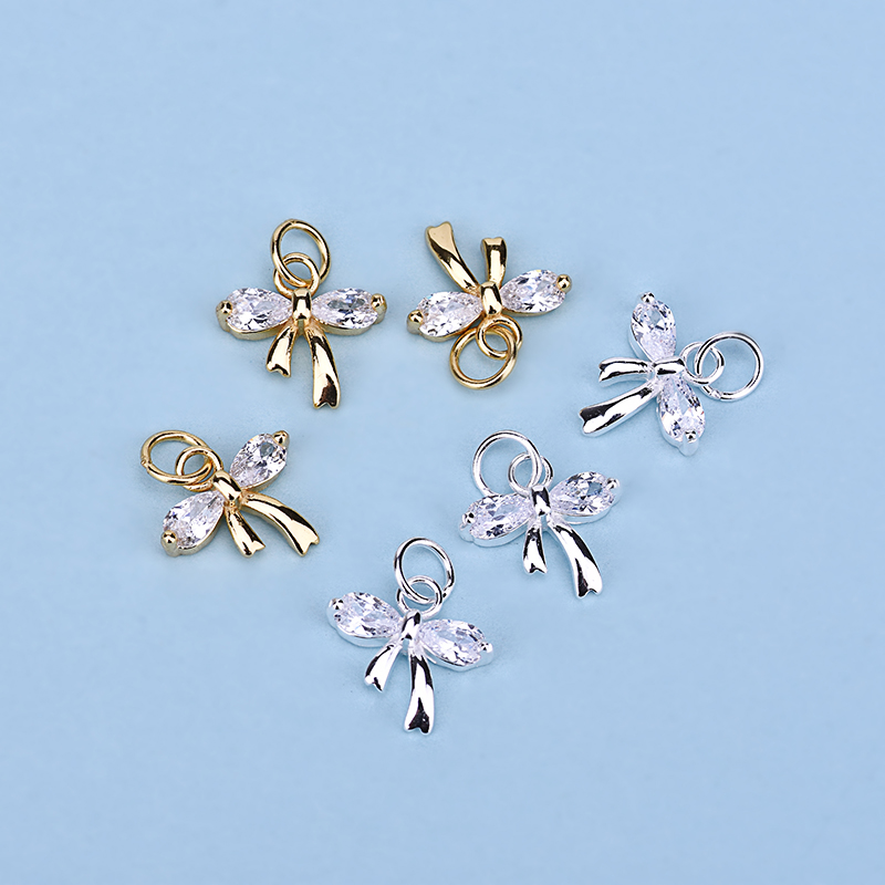 S925纯银蝴蝶结吊坠 小众设计蝴蝶手工diy串珠材料手链项链配饰