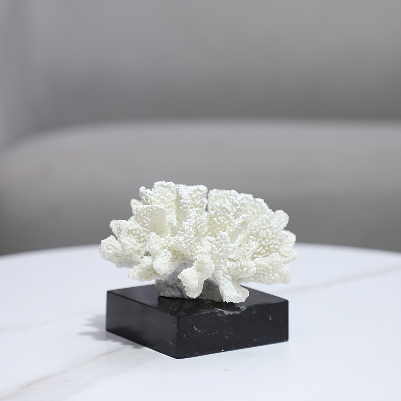 欧式轻奢几何树脂白色珊瑚艺术装饰摆件客厅卧室样板房家居装饰品