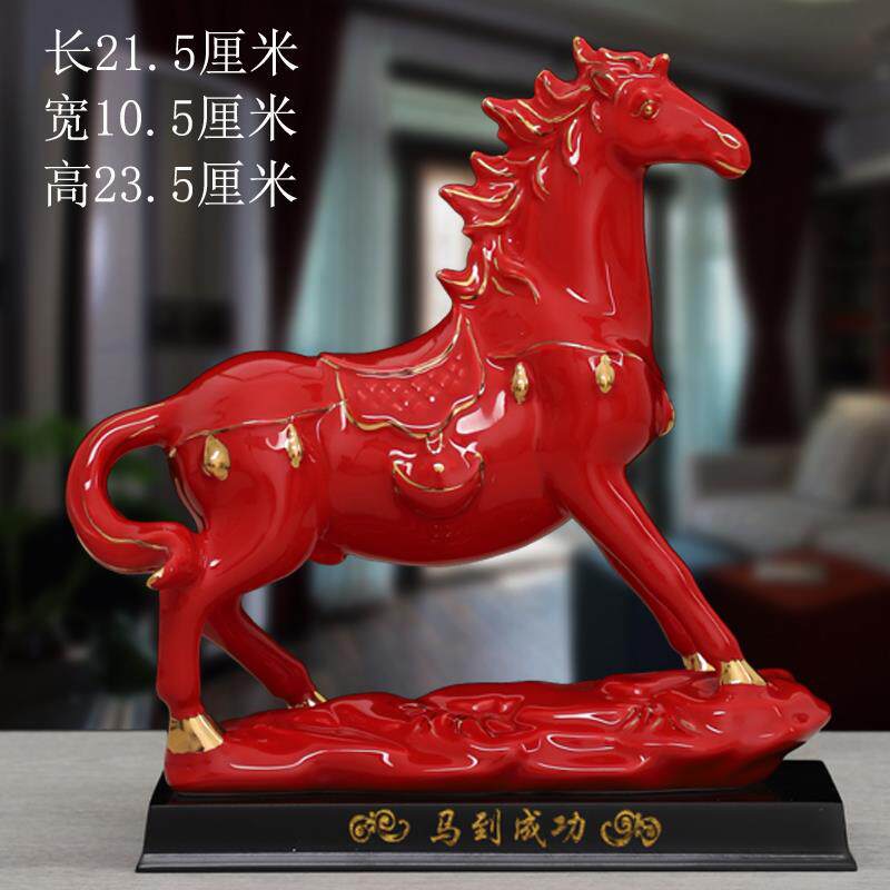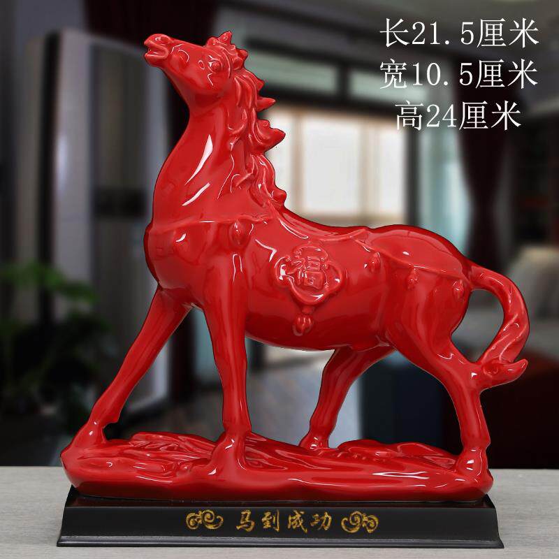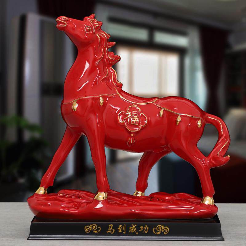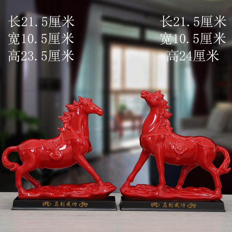 高档一室对红色陶瓷马摆件十12肖招财二瓷器马客生厅办公摆设马到