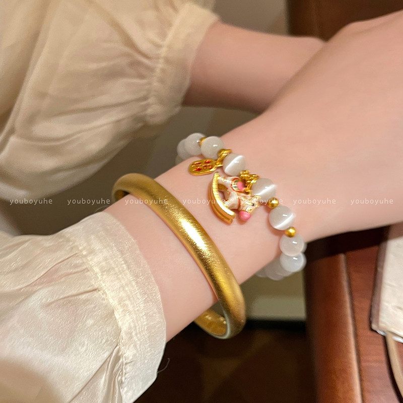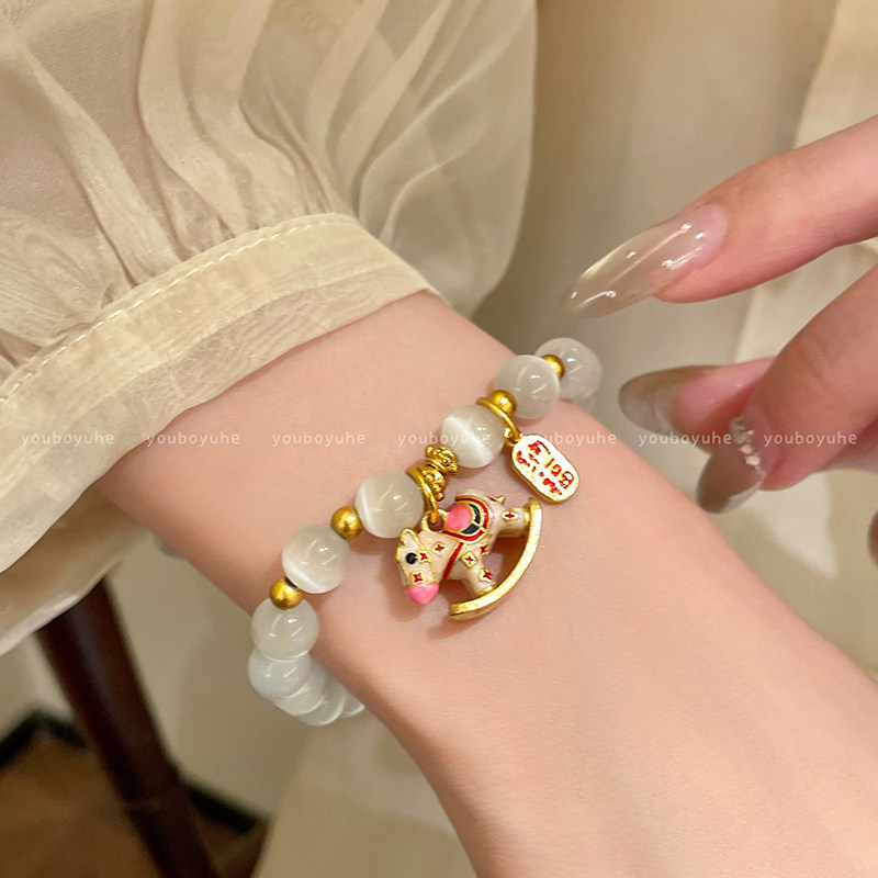 星光乐园~ 古法新中式沙金木马生肖手链女招财猫眼石串珠手串手饰