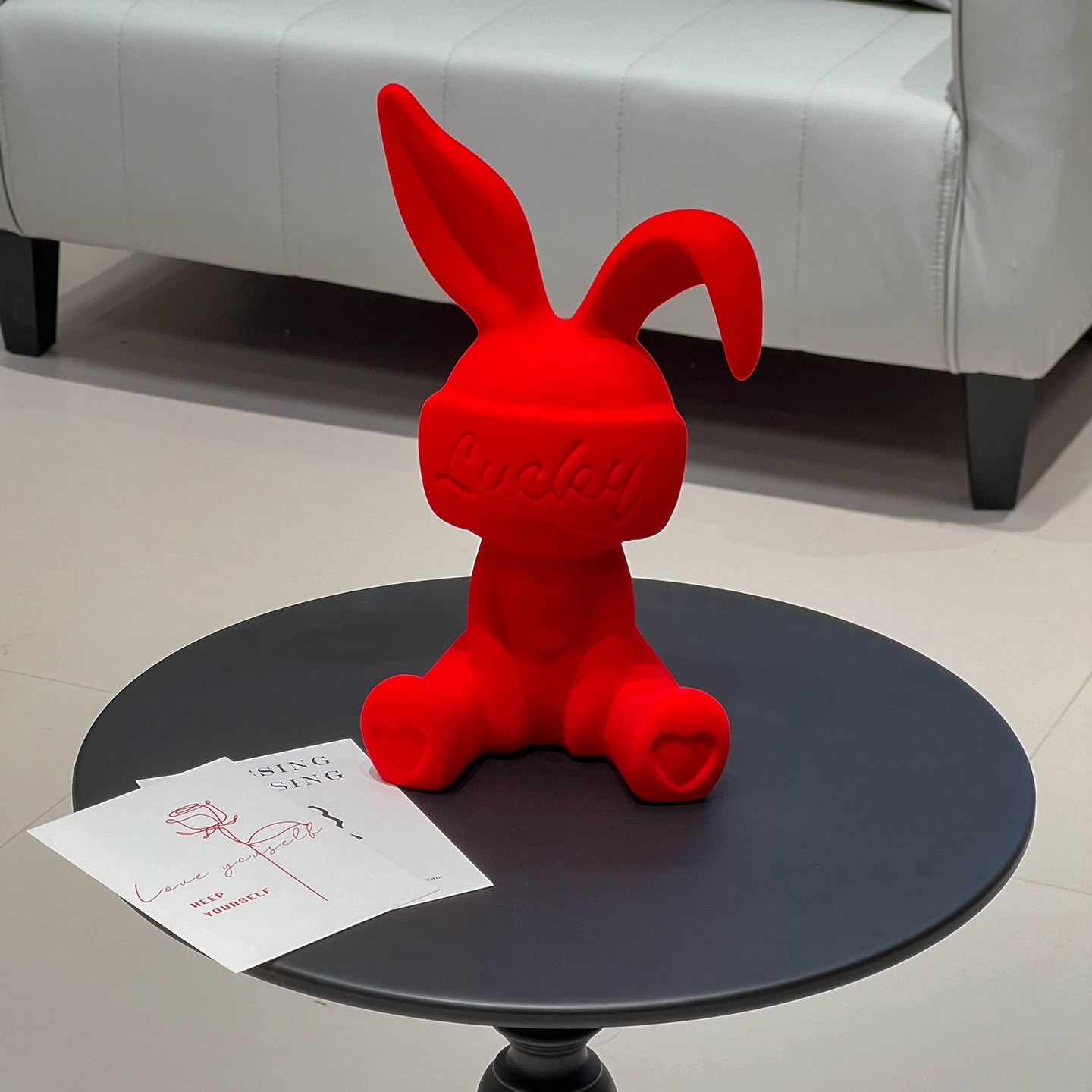 高级感生日礼物女植绒红色兔子坐姿摆件创意现代轻奢客厅入户玄关