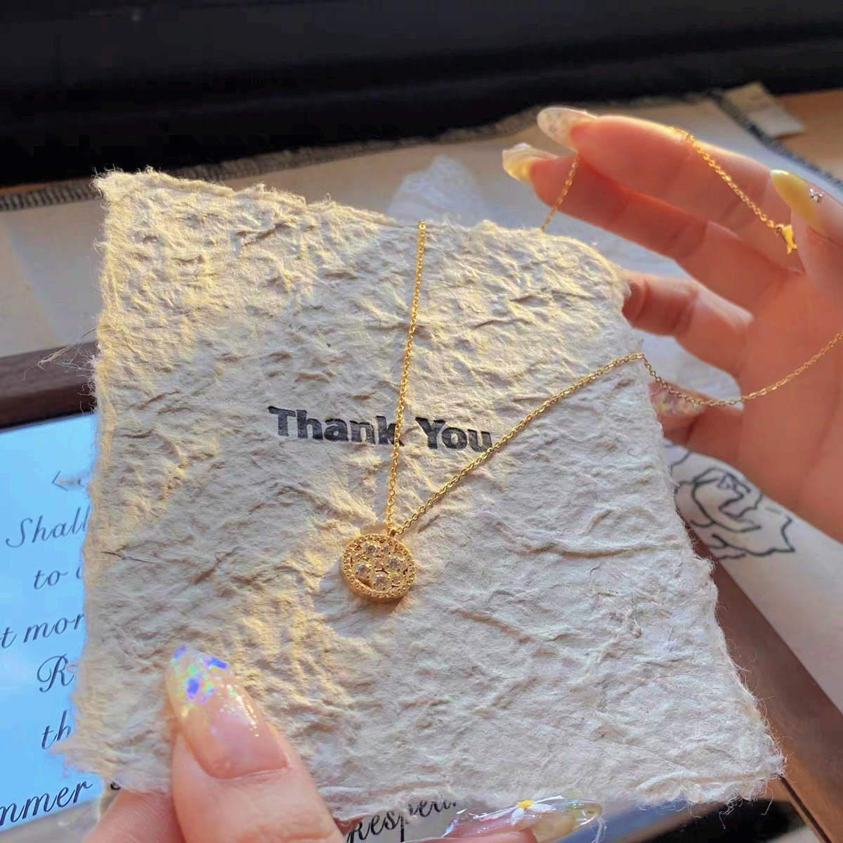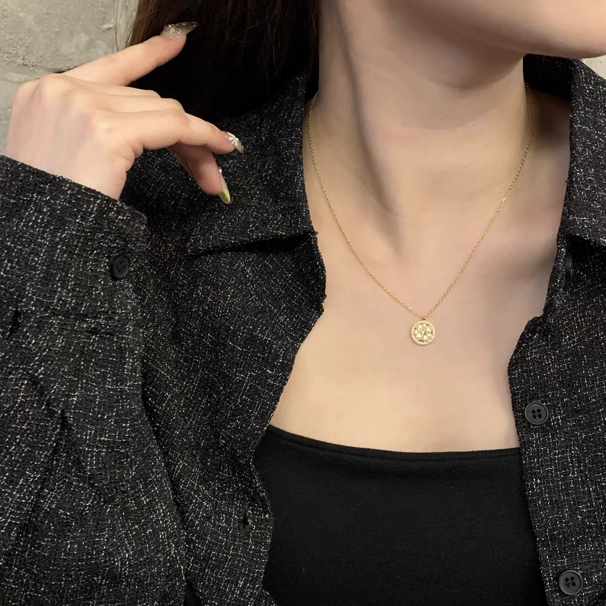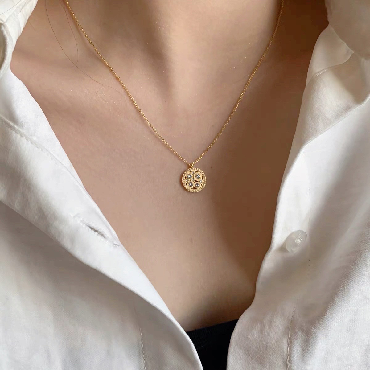 王牌!原创法式复古路路通星芒微镶钻亮钻钻圆盘吊坠锁骨项链圆牌