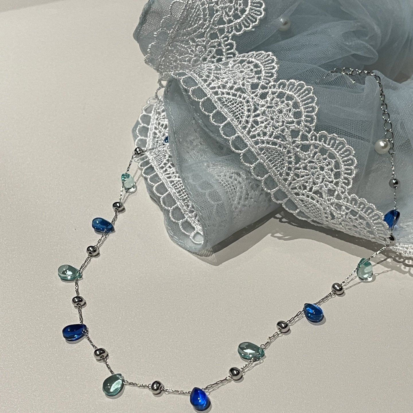 韩国代购正品蓝色水滴水晶项链极简ins风锁骨链2025夏季新款项链