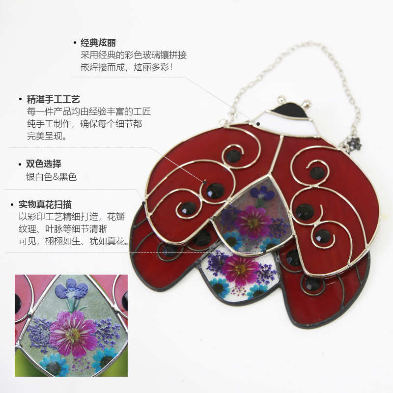 热卖彩色玻璃卡通动物挂件手工镶嵌工艺品装饰礼品创意瓢虫