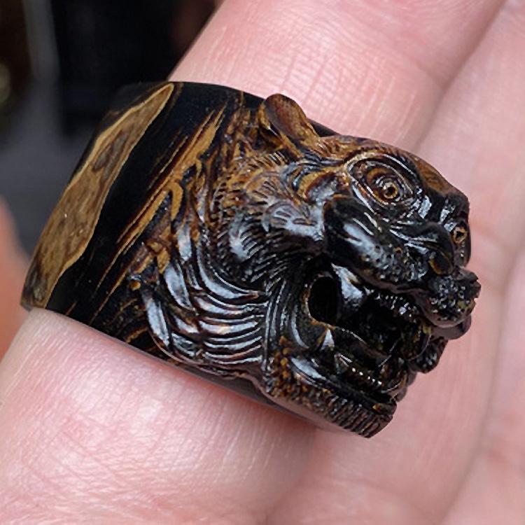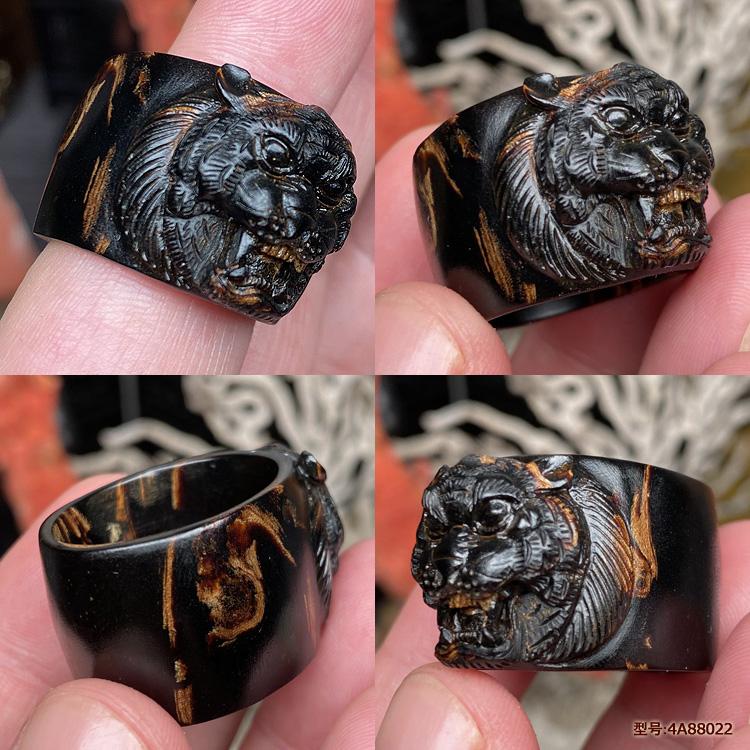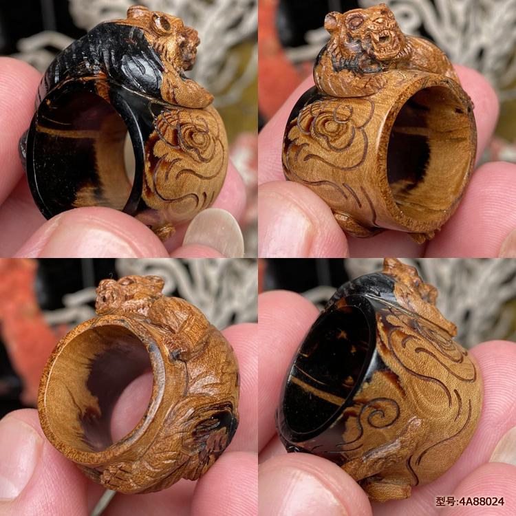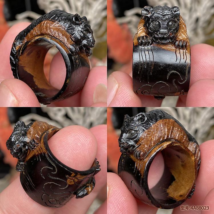 保真天然正品海柳活柳戒指扳指男款素环文玩指环血柳拇指精雕老虎