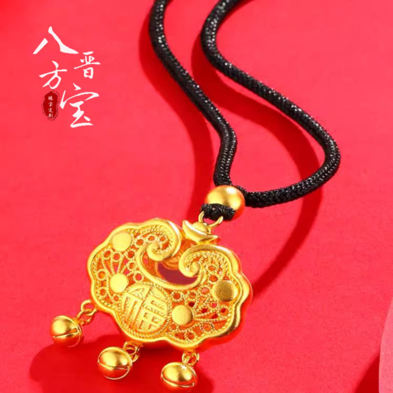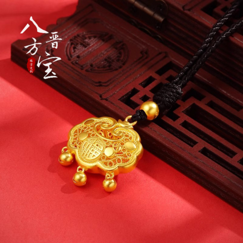 黄金长命锁婴儿金锁项链999足金福字祥云平安锁金包银吊坠编绳女