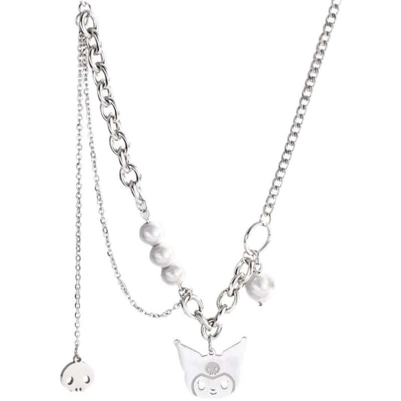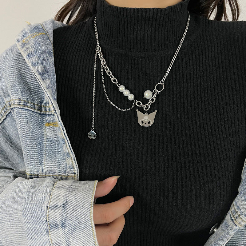 OUKECHUN库洛米反光珍珠项链女ins嘻哈小众钛钢不掉色锁骨链配饰