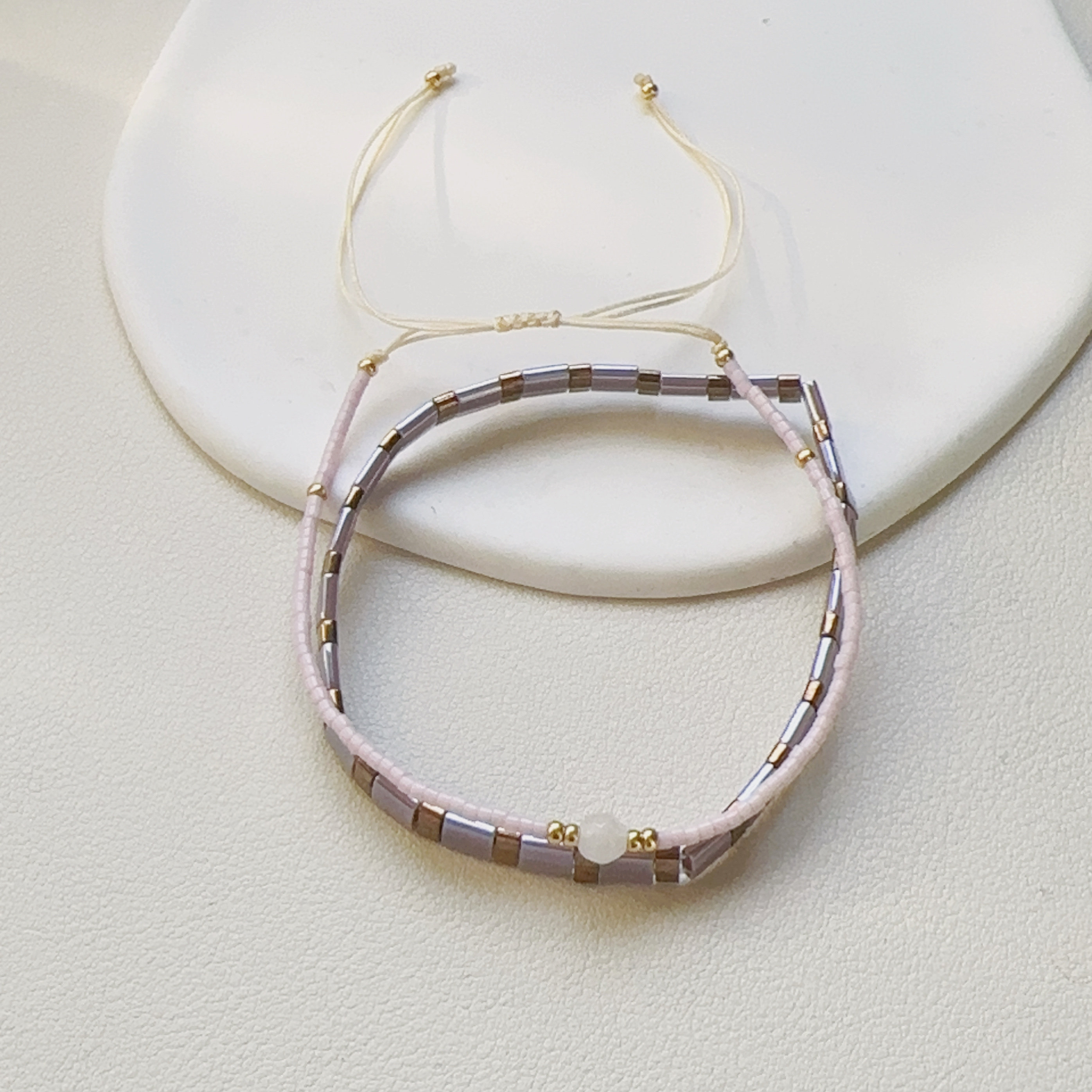 MLGM原创新款波西米亚紫色叠戴tila手链 个性高级感白玉石细手串