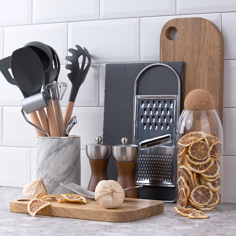 厨房样板间软装饰品摆件北欧厨具食材罐研磨器实木面包板菜板砧板