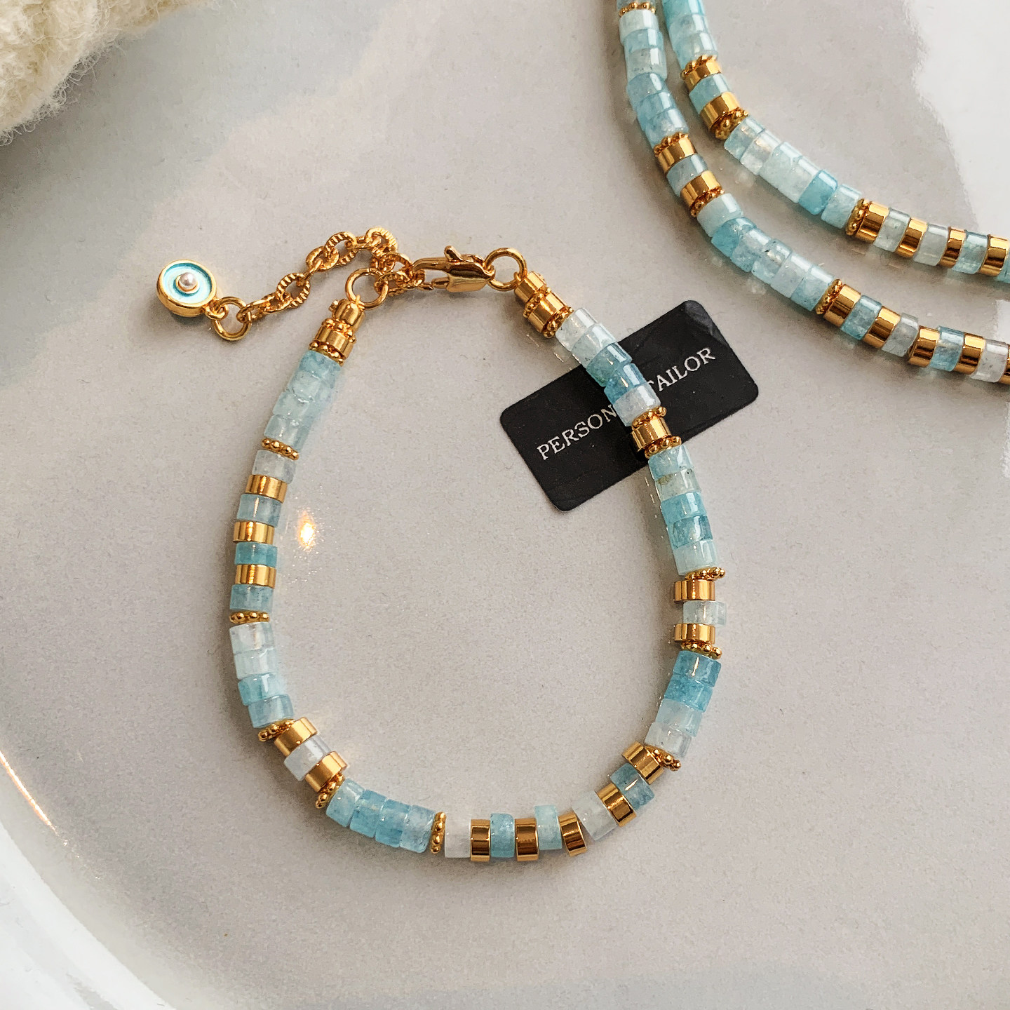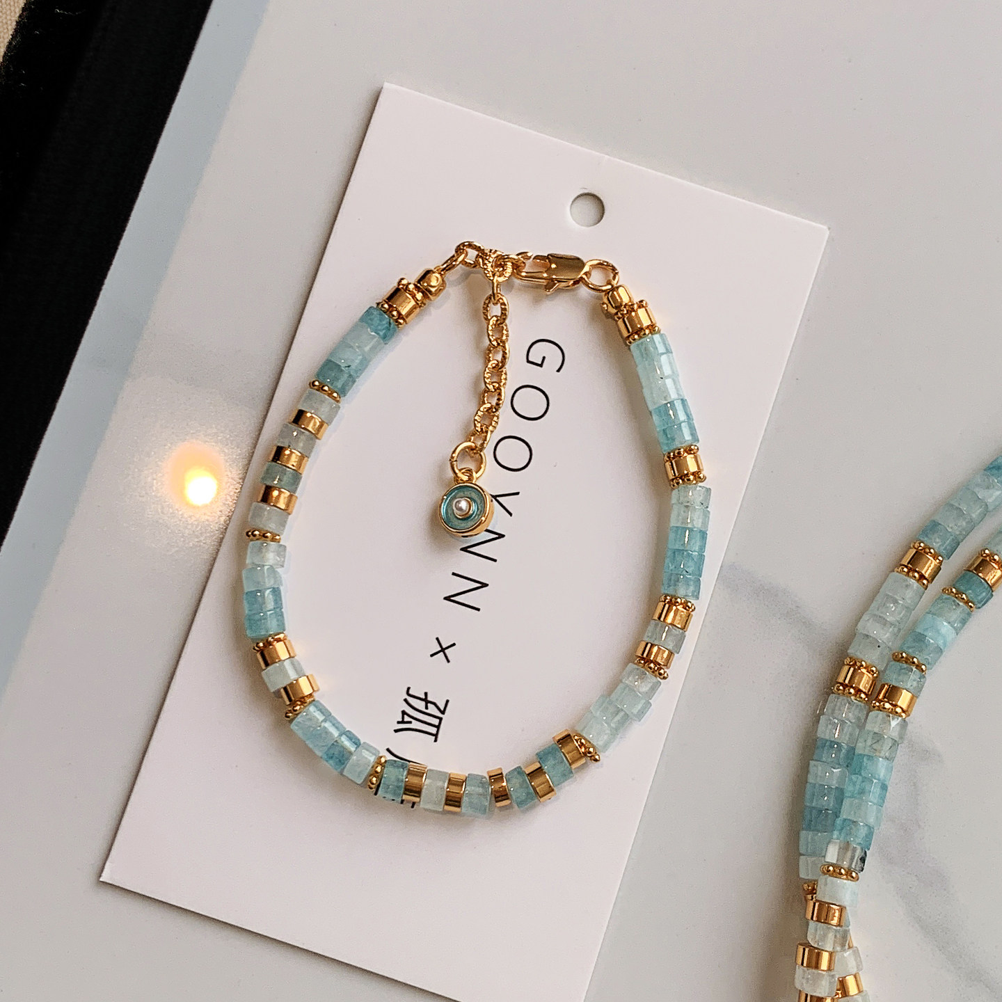 新中式海蓝宝串珠手链女轻奢小众精致高级感蓝色新款爆款手串首饰