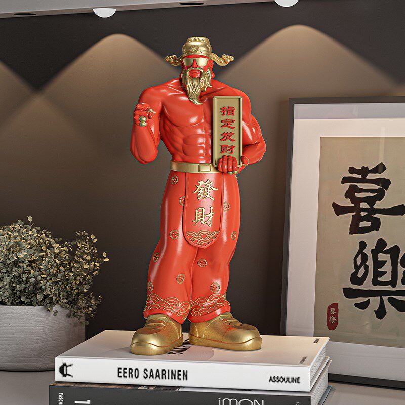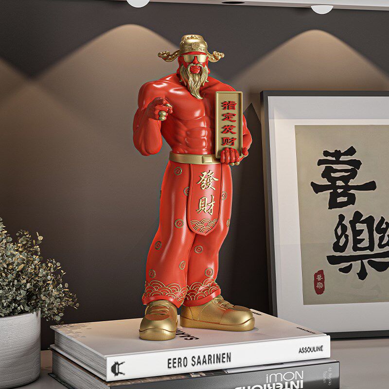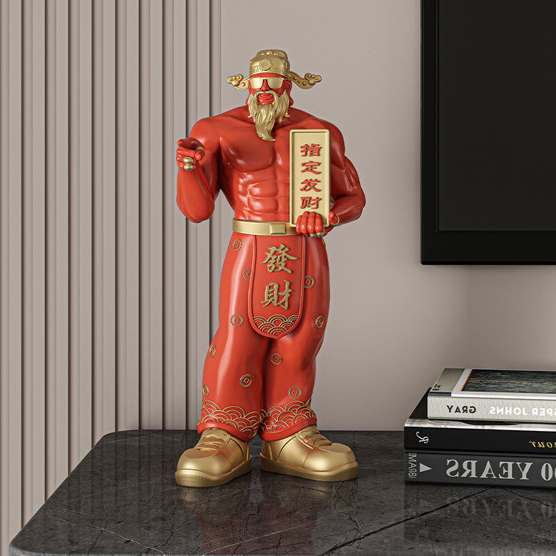 指定发财肌肉财神收银台桌面摆件招财店铺前台装饰品公司开业礼物
