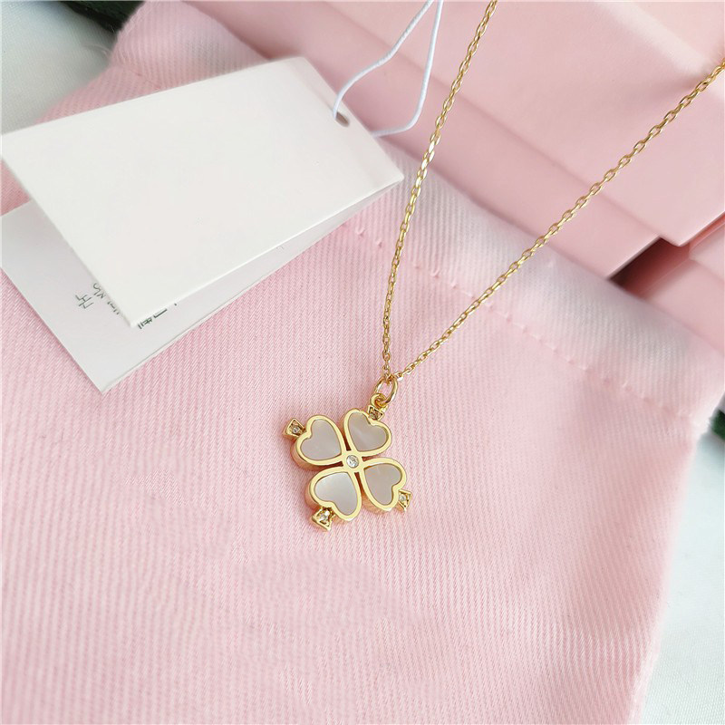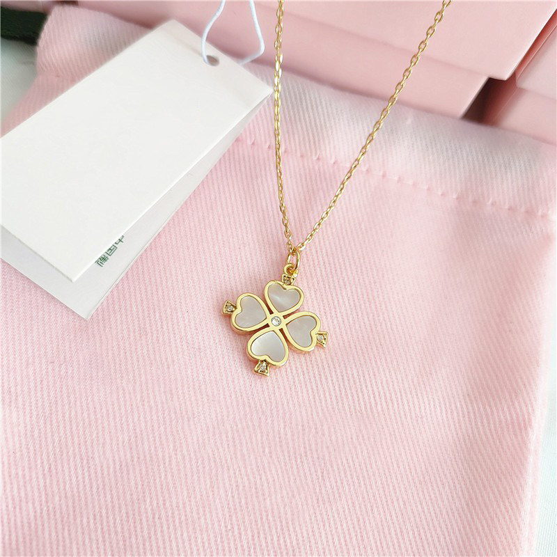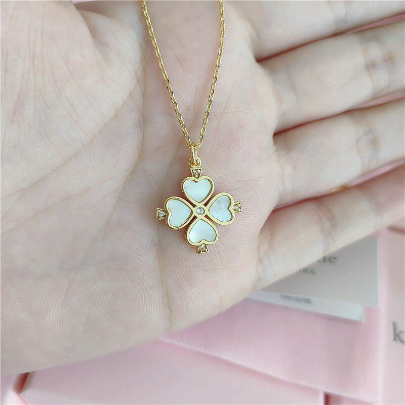 欧美温柔气质镶嵌白色贝壳幸运四叶草花朵母贝吊坠项链锁骨链