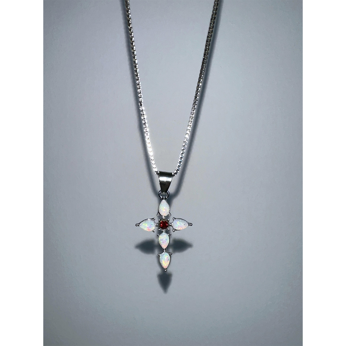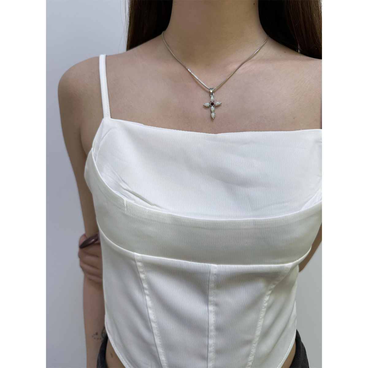 atmshop辣妹复古超闪红色玻璃锆石十字架项链甜酷千禧宫廷锁骨链