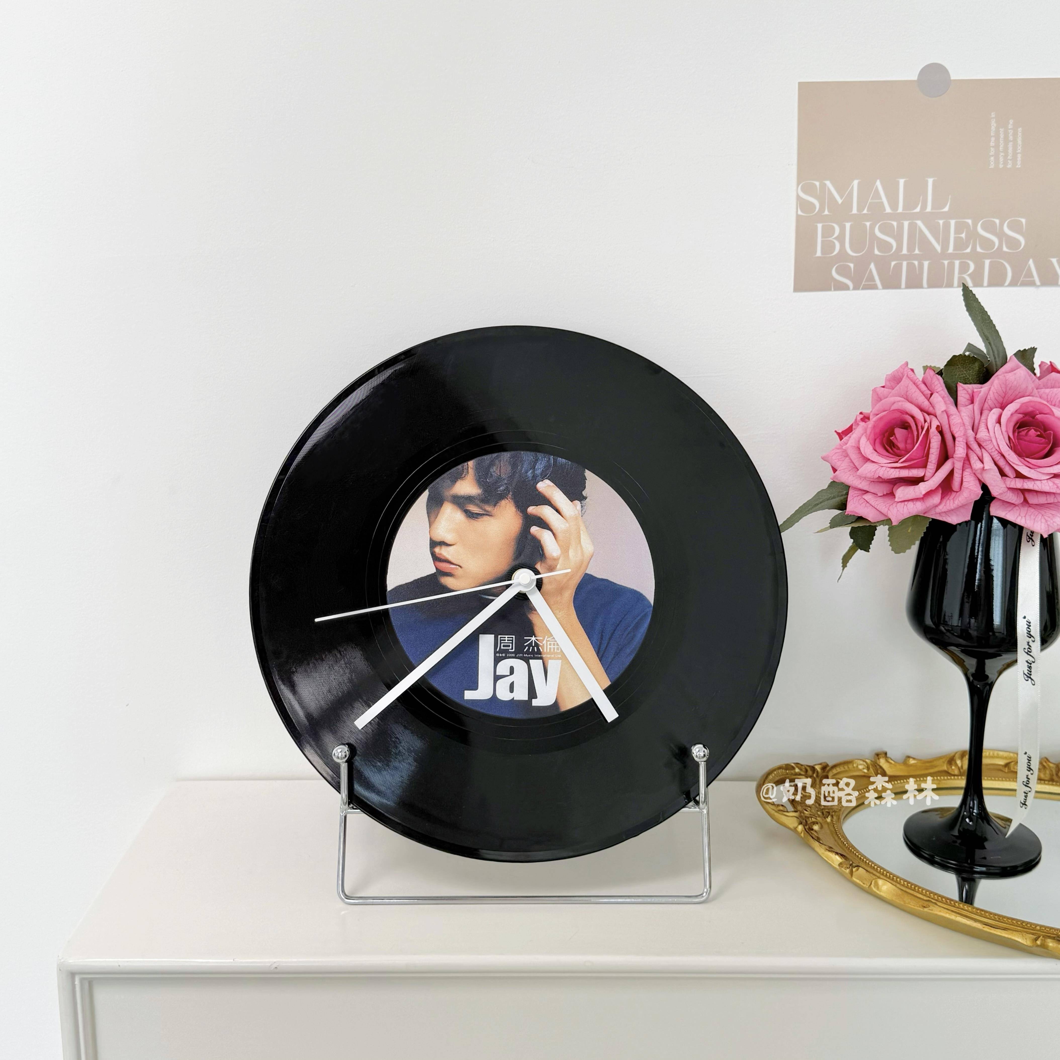 周杰伦JAY覆古黑胶唱片DIY简约创意装饰生日礼物钟表摆件展示架
