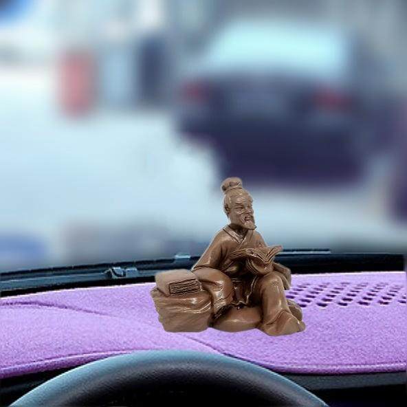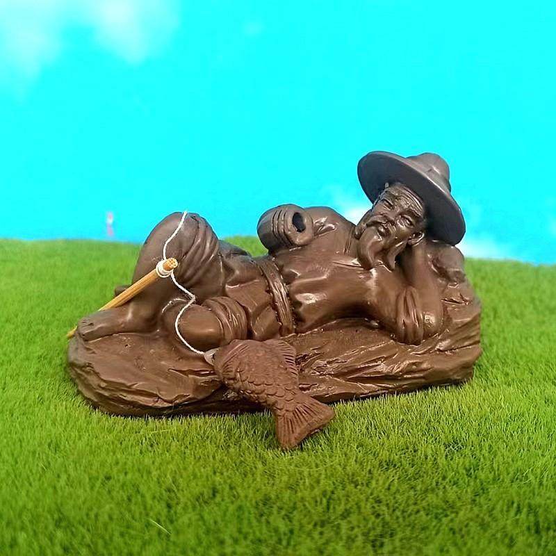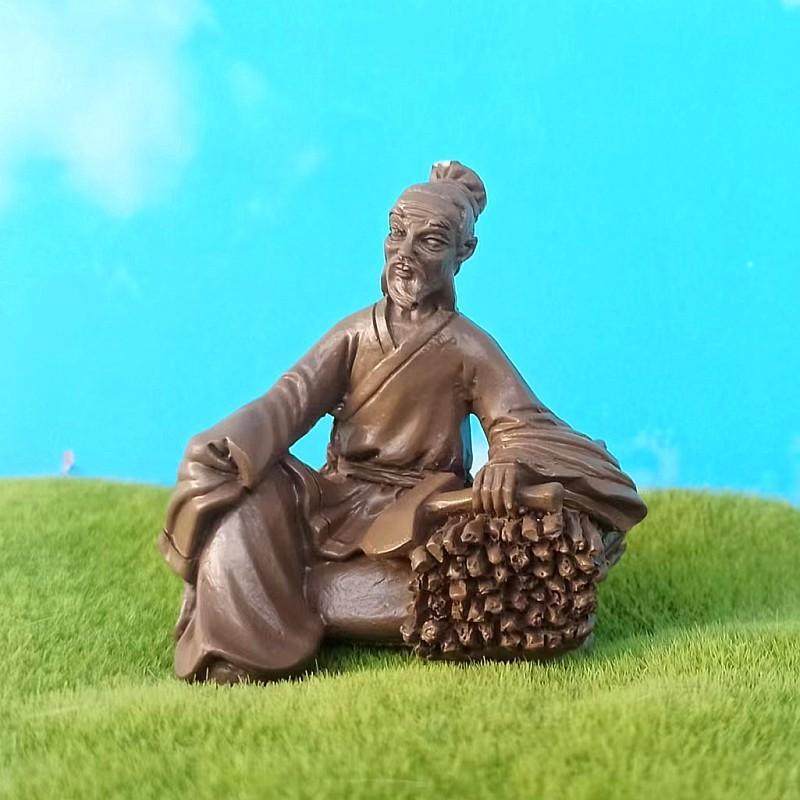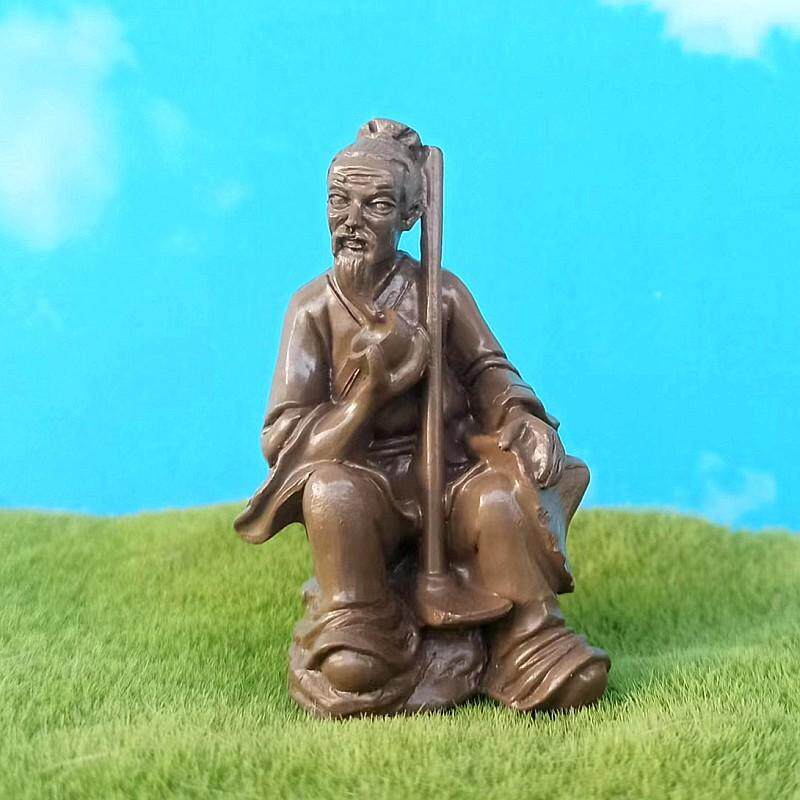 古人摆件砍柴读书路人钓鱼仿紫砂古琴人物车内假山鱼缸造景桌面放