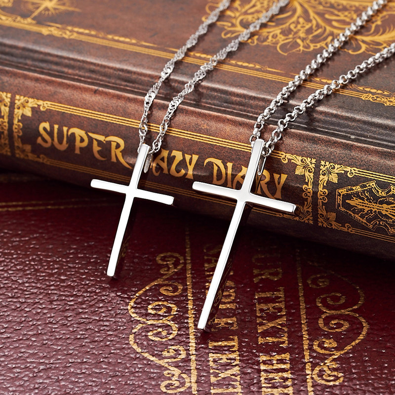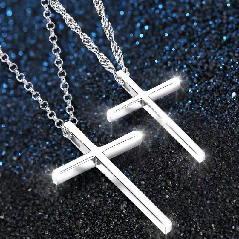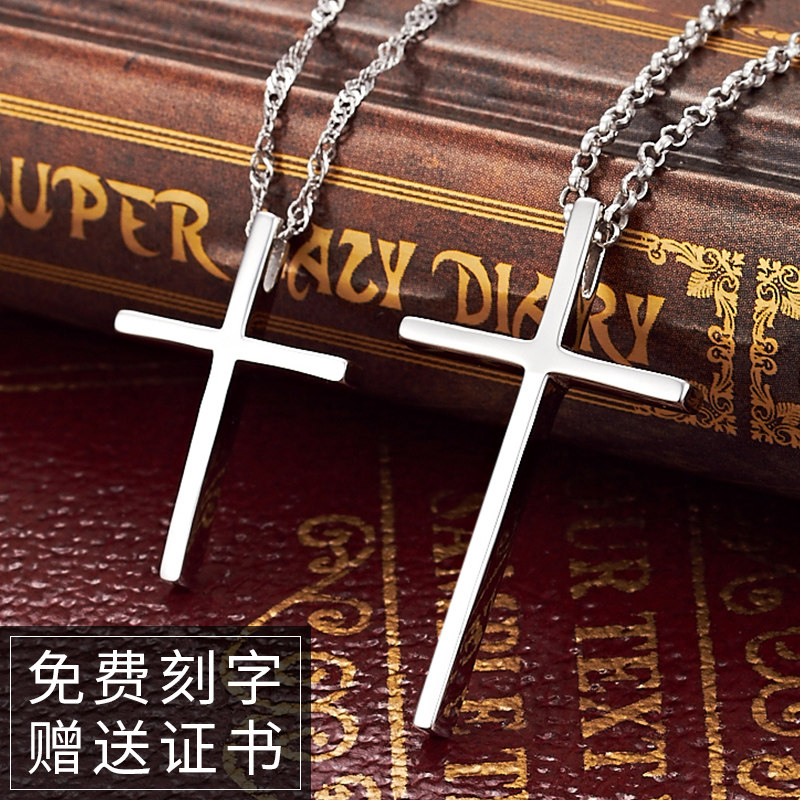 个性简约s925银饰项链百搭情侣吊坠潮男黑色十字架项链女冷淡风