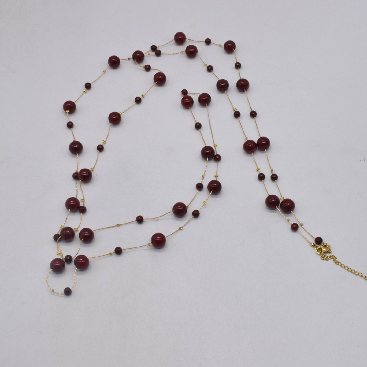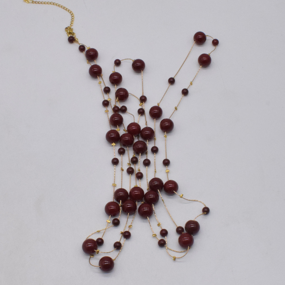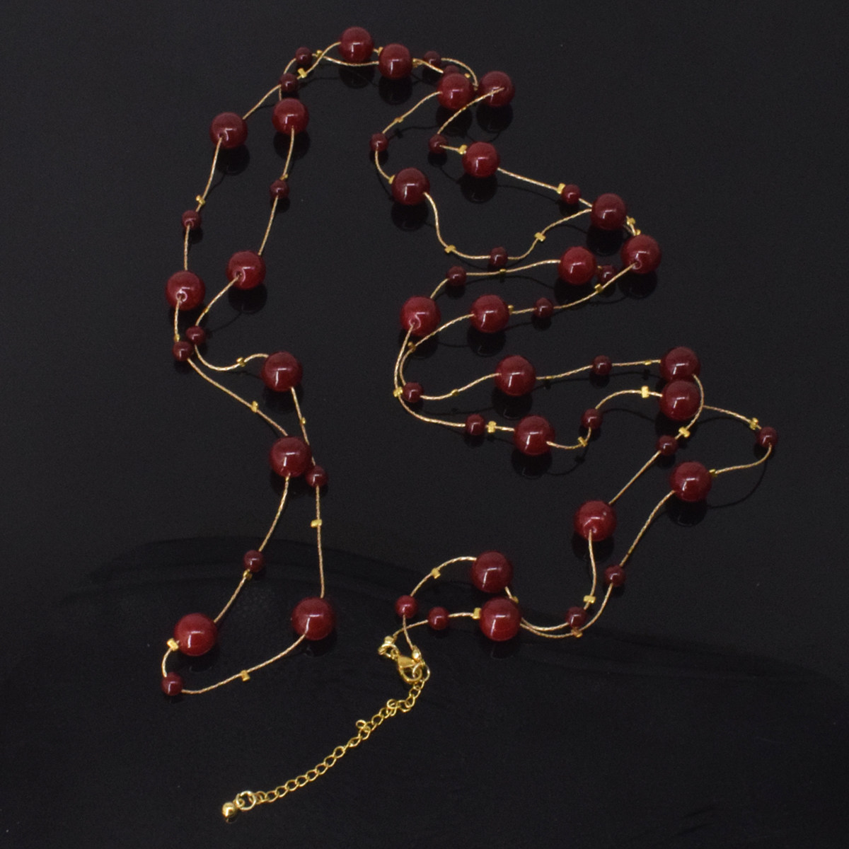 复古红色珍珠项链锁骨链轻奢小众高级多层叠戴毛衣链时尚简约颈链
