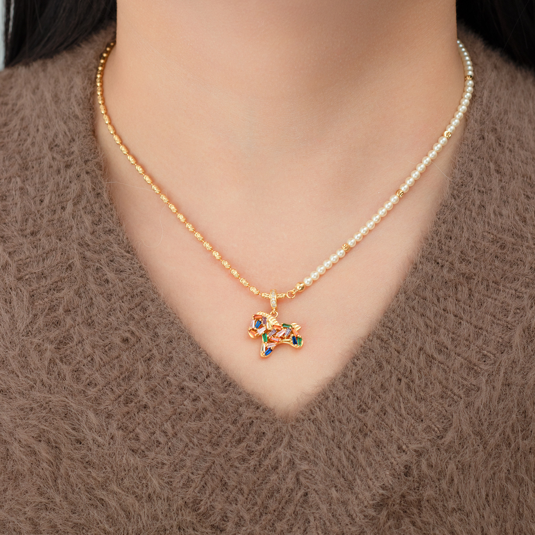 原创设计彩虹小马珍珠项链女耳钉轻奢高级感马上有钱2026新款配饰