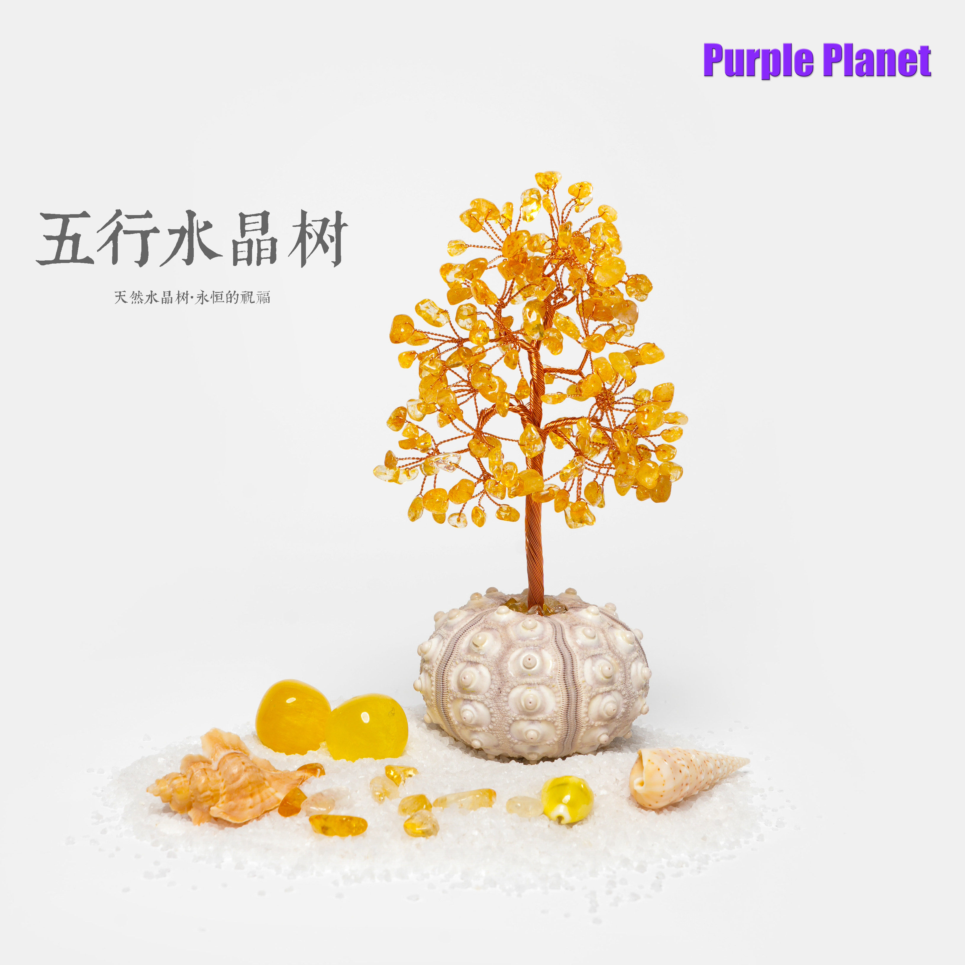 五行水晶树/水晶摆件/女士生日轻奢礼物/紫色星球原创工艺品/水晶