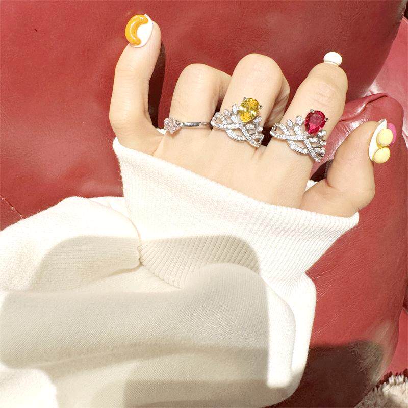 轻奢高级感梨形水滴皇冠个性戒指女仿真钻戒宝石指环