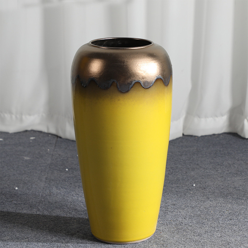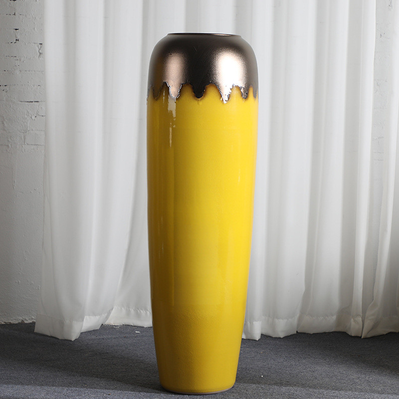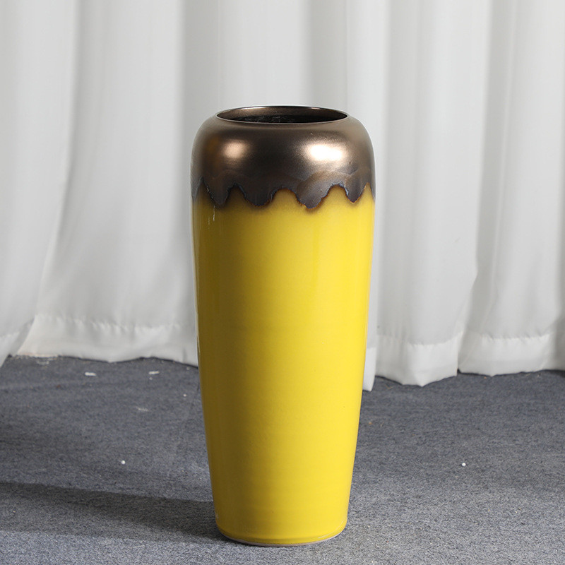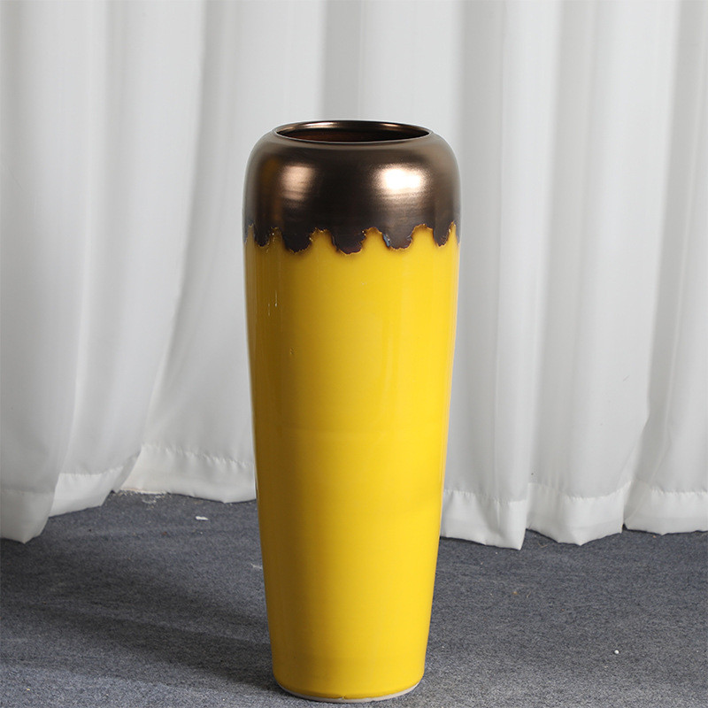 景德镇落地陶瓷花瓶大客厅干花花瓶摆件轻奢北欧黄色现代简约摆设