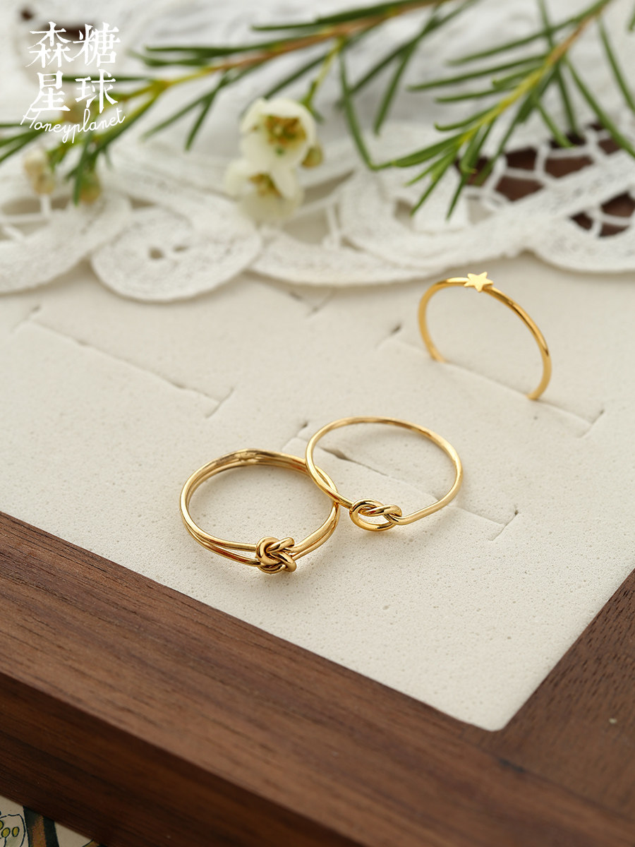 森糖星球韩版简约双层包金戒指女ins时尚性冷淡风开口尾戒4130