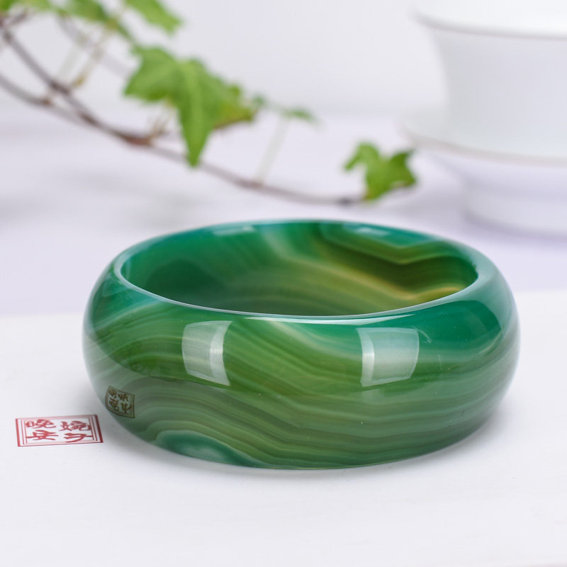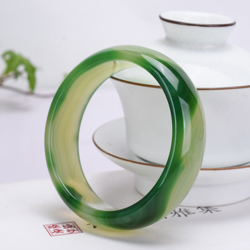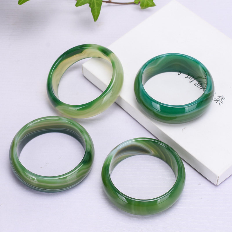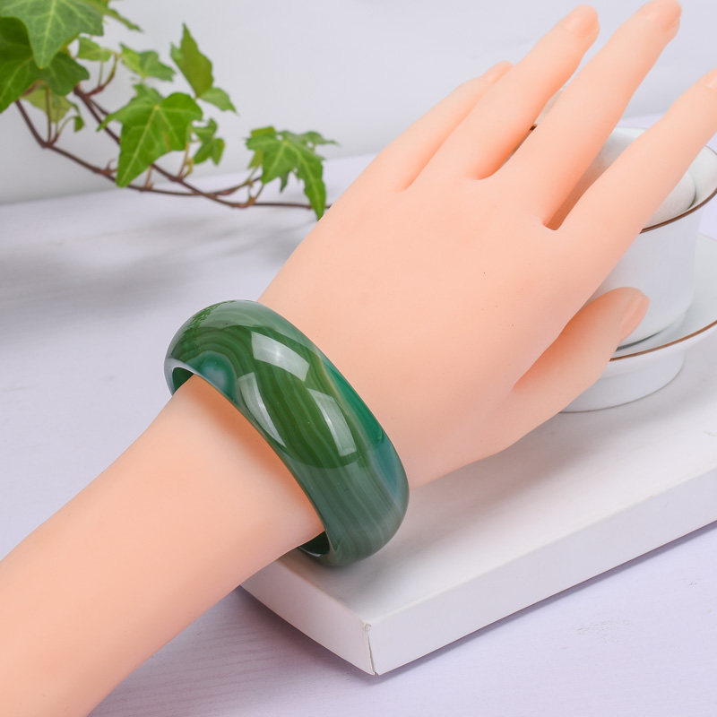 巴西天然草绿色缠丝玛瑙玉髓手镯轮胎版加宽加厚复古百搭款赠证书