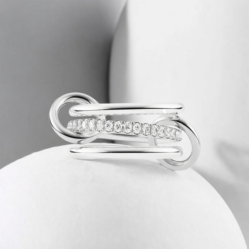 轻奢珠宝S925通体纯银欧美三环戒指热销简约个性设计款时尚单排钻