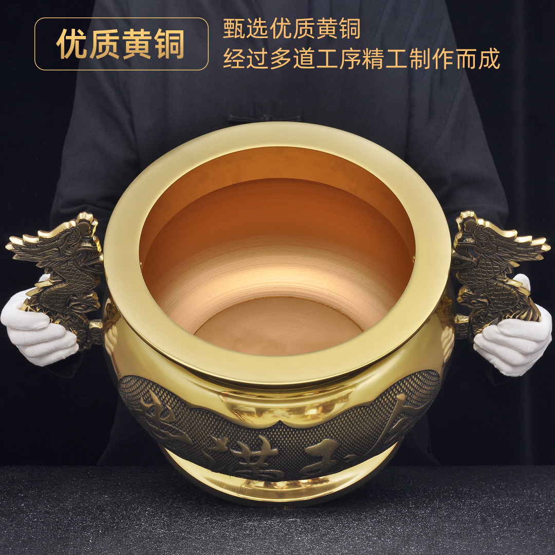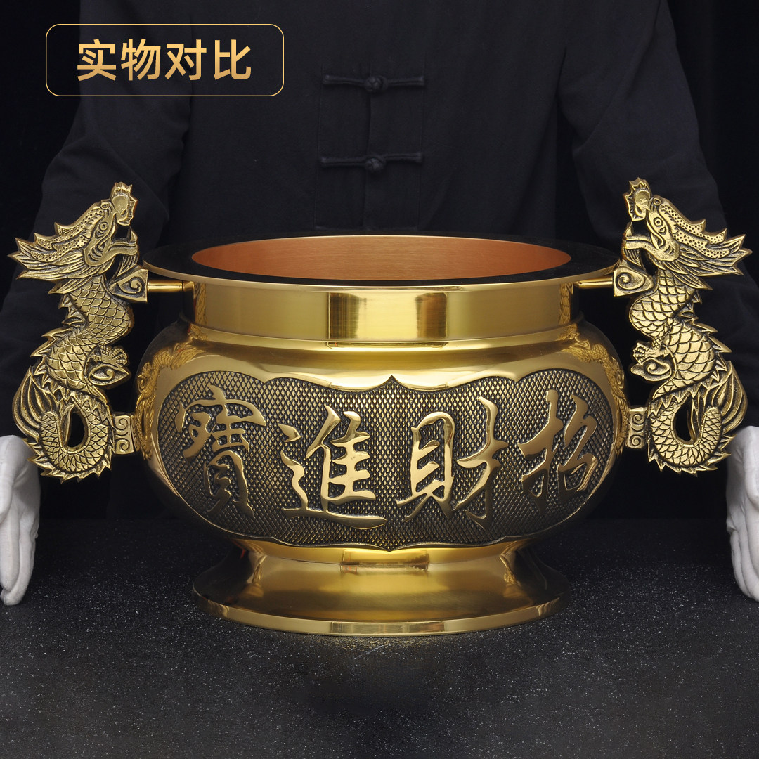 黄铜双龙耳招财炉大号家用供奉招财香炉烧香插香线香炉香道薰香炉