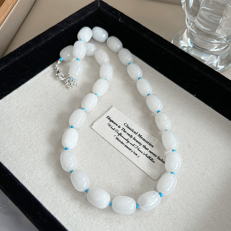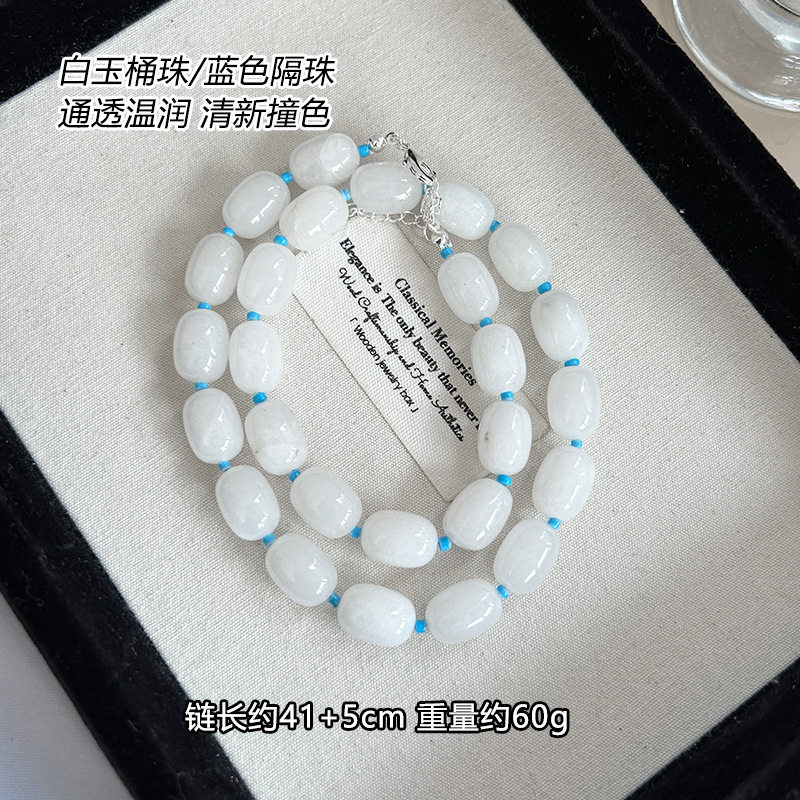 新款复古冰岛清冷感月光白珠串珠项链清新温柔气质百搭锁骨链女
