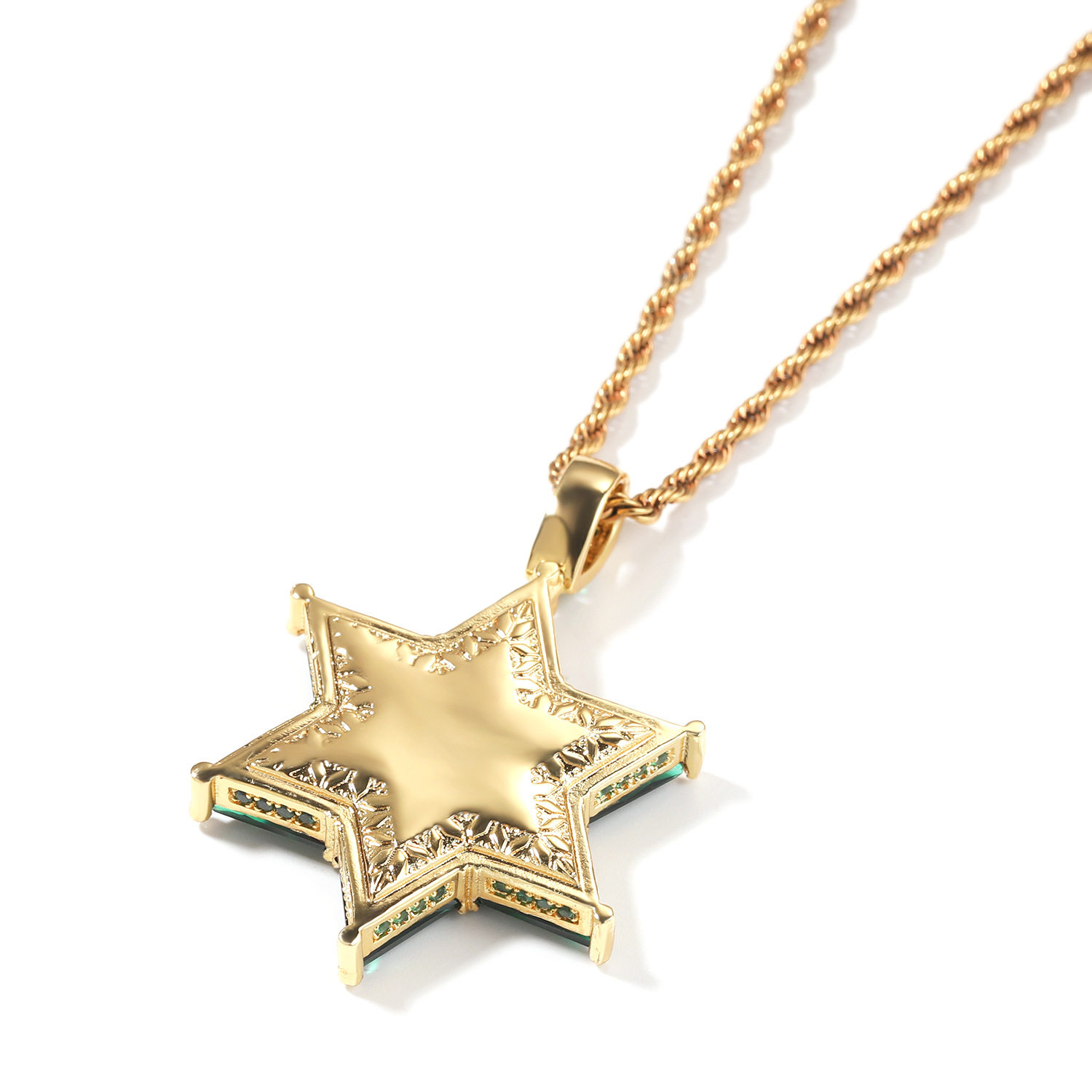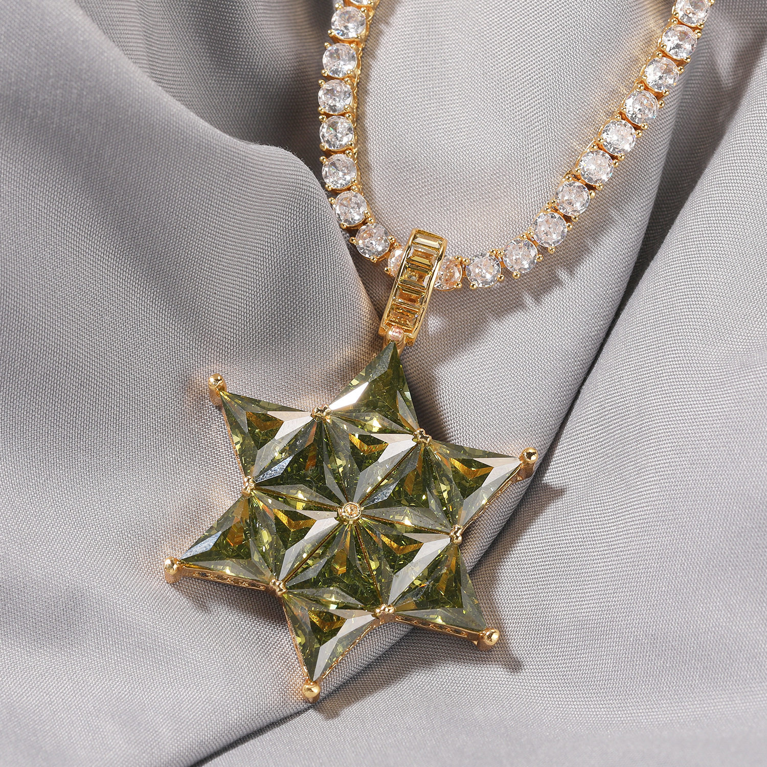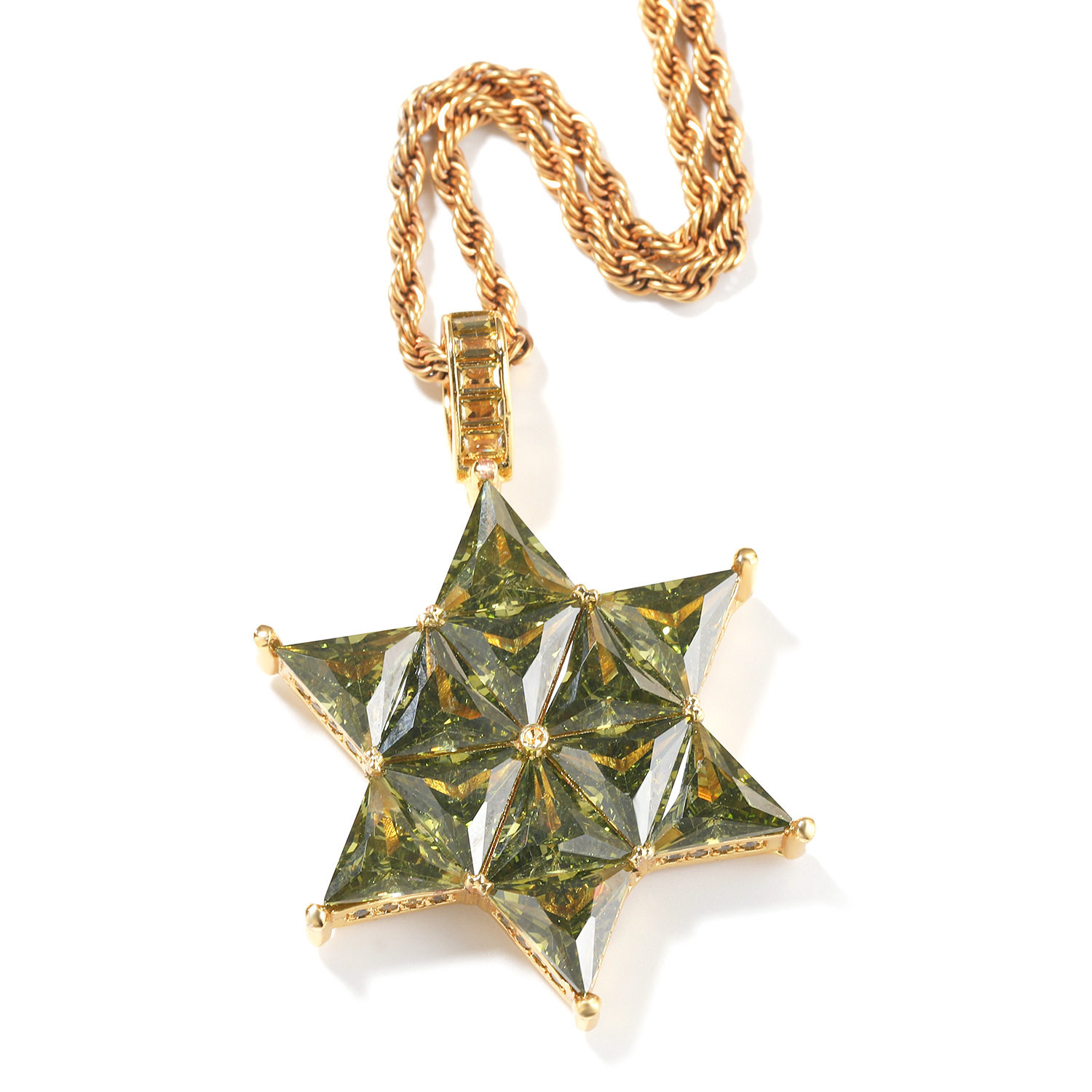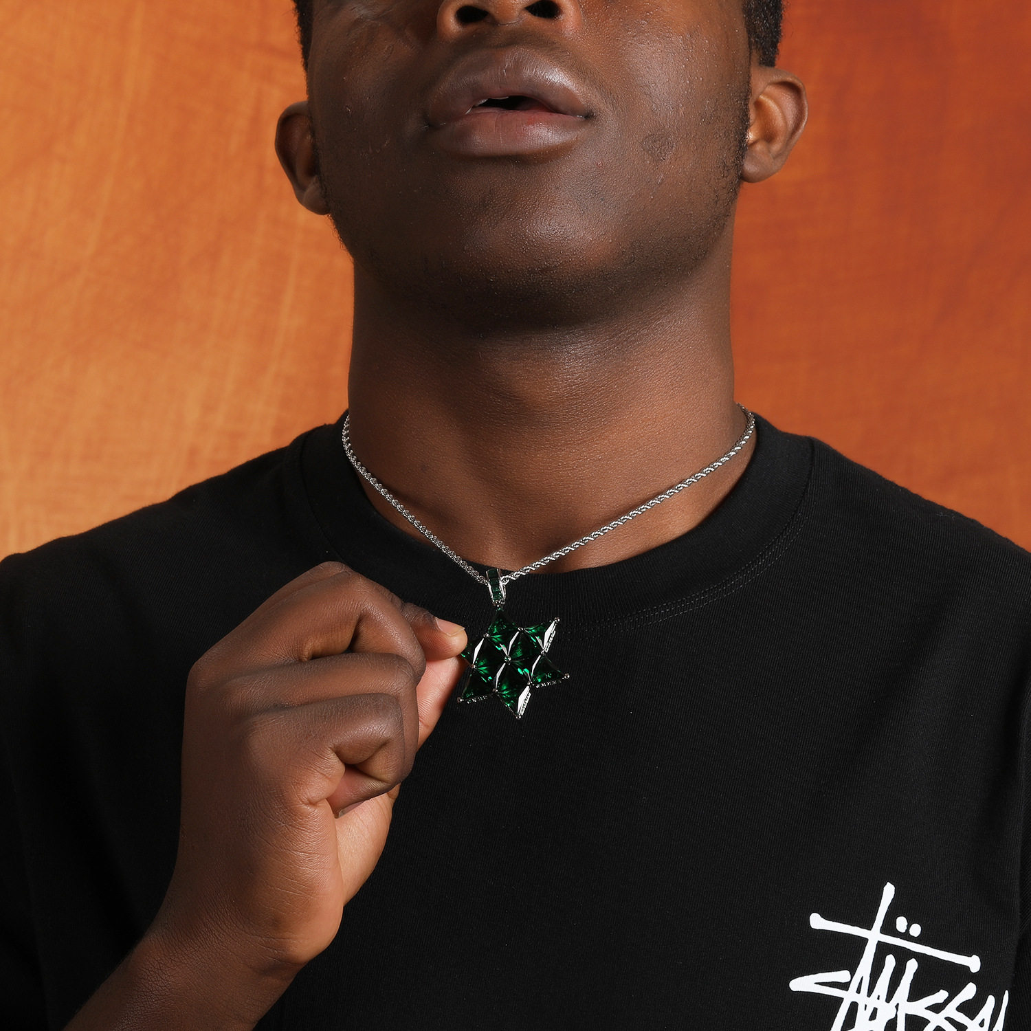 ICE BLING 绿色锆石六芒星设计吊坠项链 小众设计个性时尚潮流