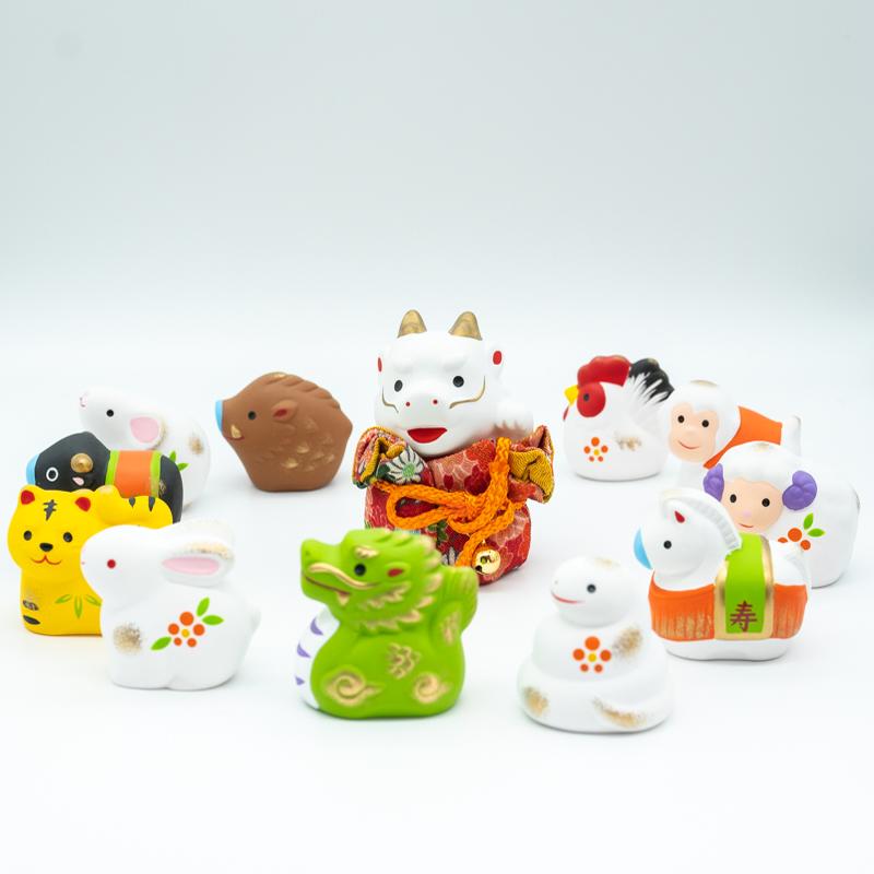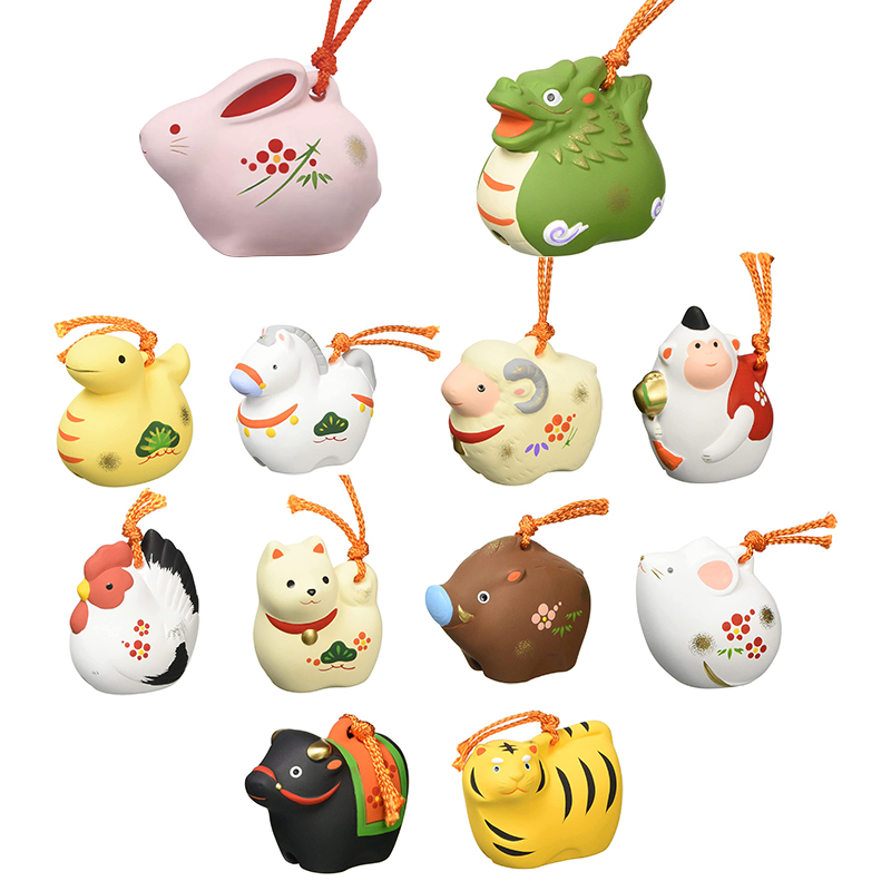 日本药师窑牛年 新年十二生肖幸运土铃挂件摆件 招福开运生日礼物